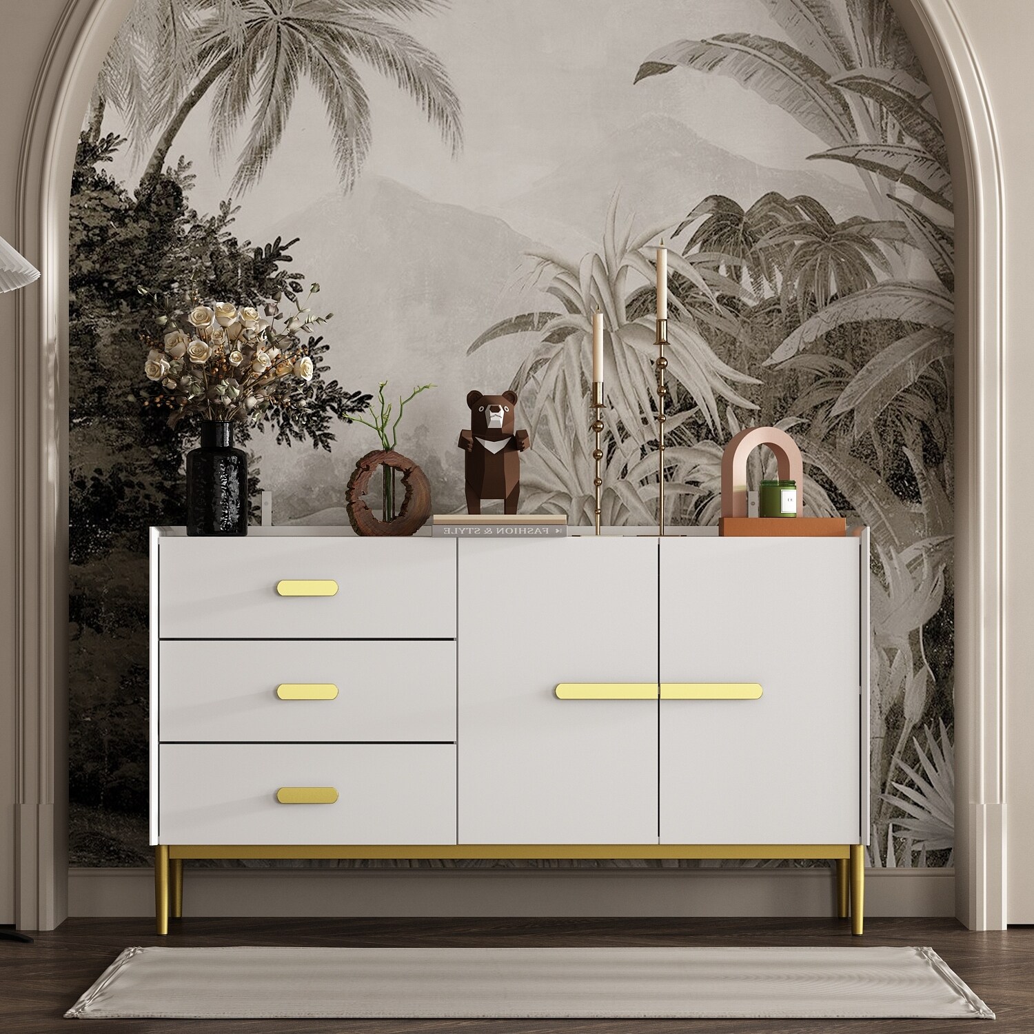 Modern Sideboard Buffet Cabinet with Storage Cabinets, Drawers and Shelves
