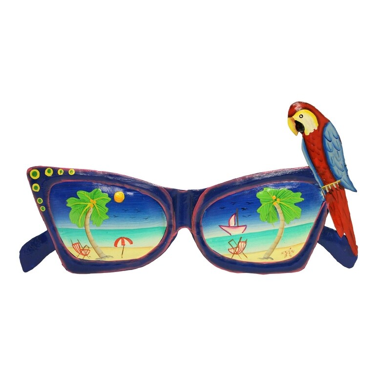 Blue Sunglasses with Parrot Haitian Metal Wall Decor 13.5 Inch - Multi