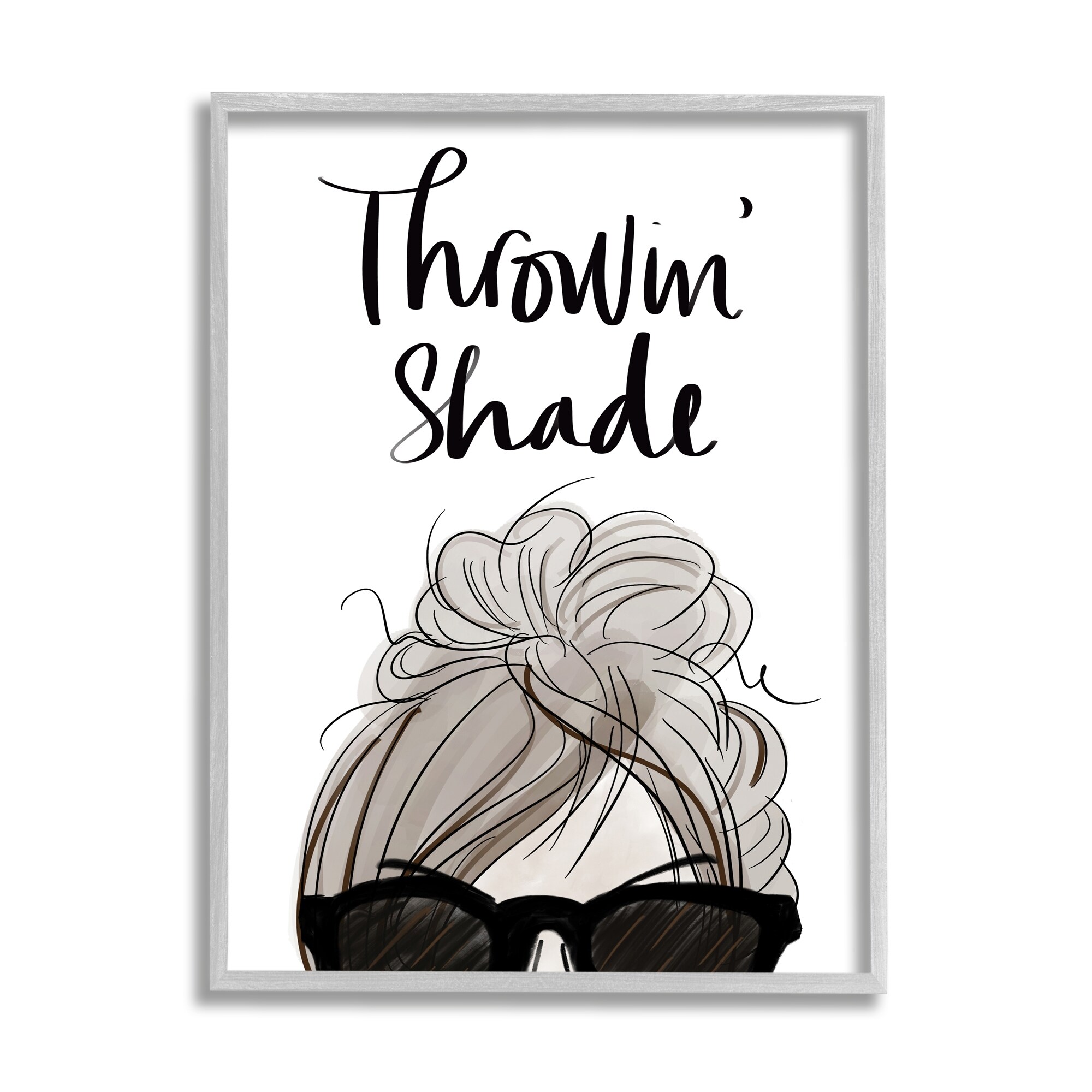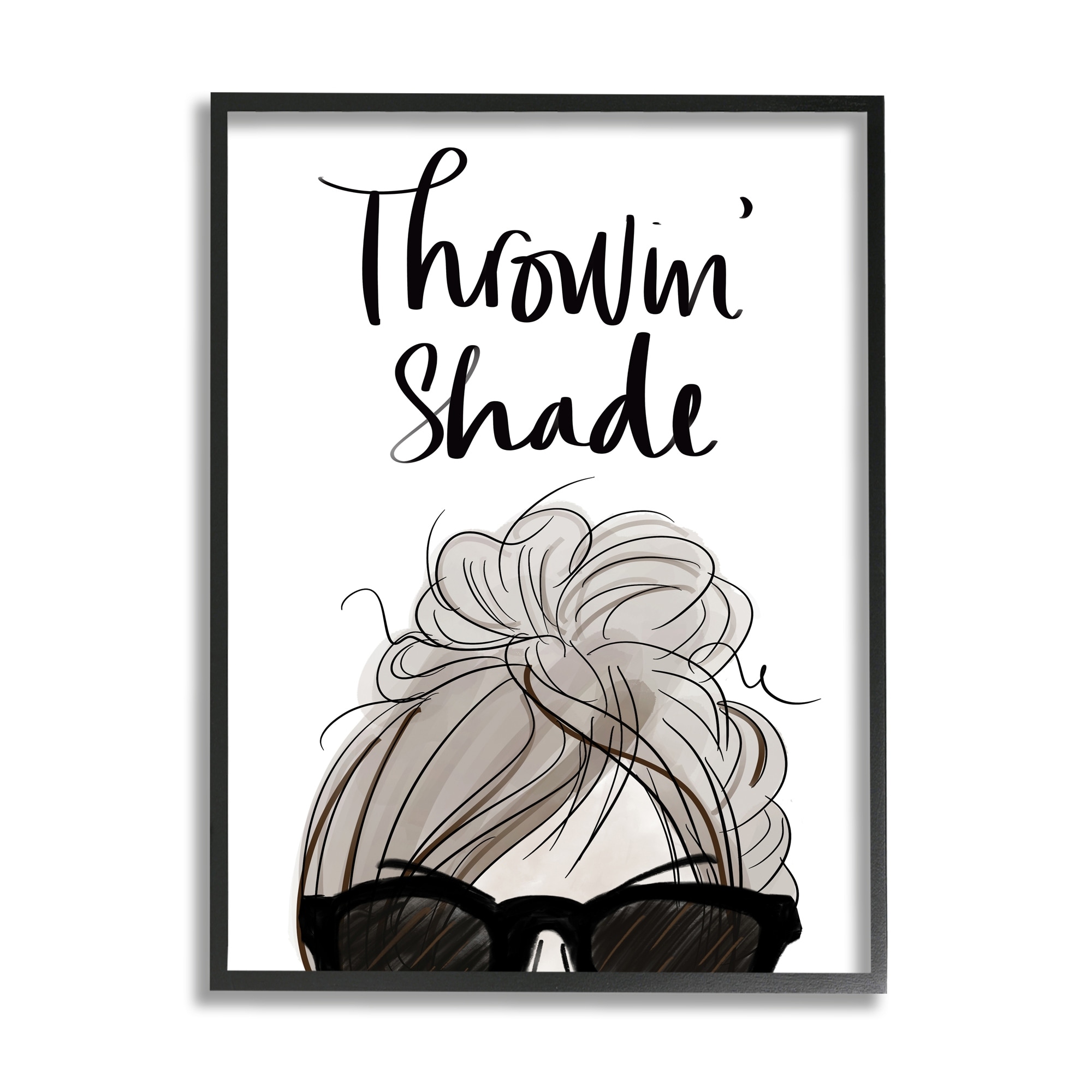 Stupell Throwin' Shade Phrase Woman in Sunglasses Framed Wall Art - White