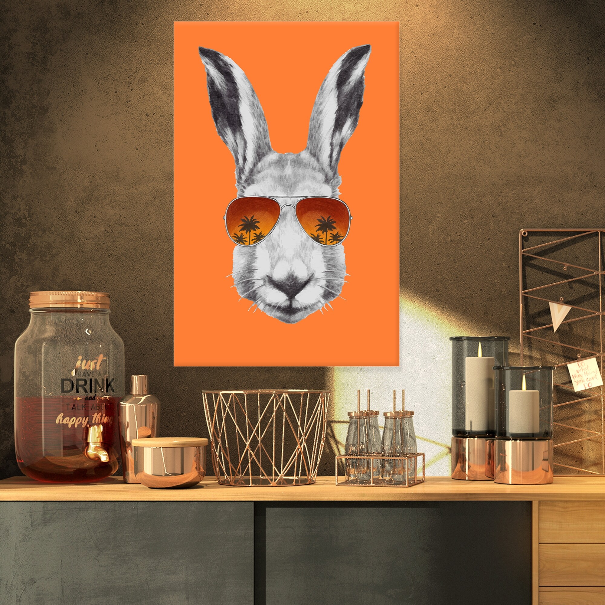Designart "Funny Rabbit with Sunglasses" Animal Canvas Art Print