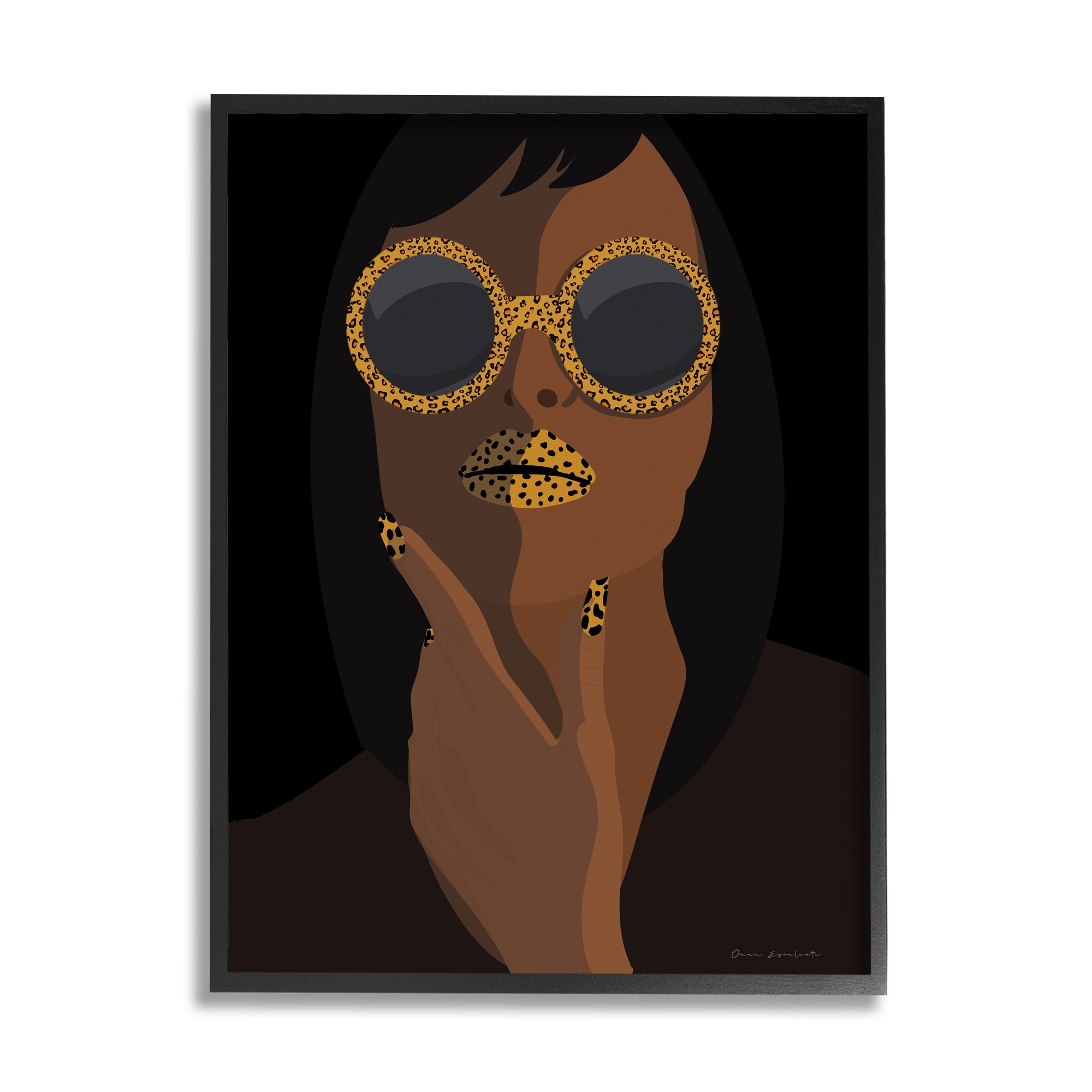 Stupell Industries Glam Female Portrait Leopard Print Sunglasses Patterned Lips Framed Wall Art - Black