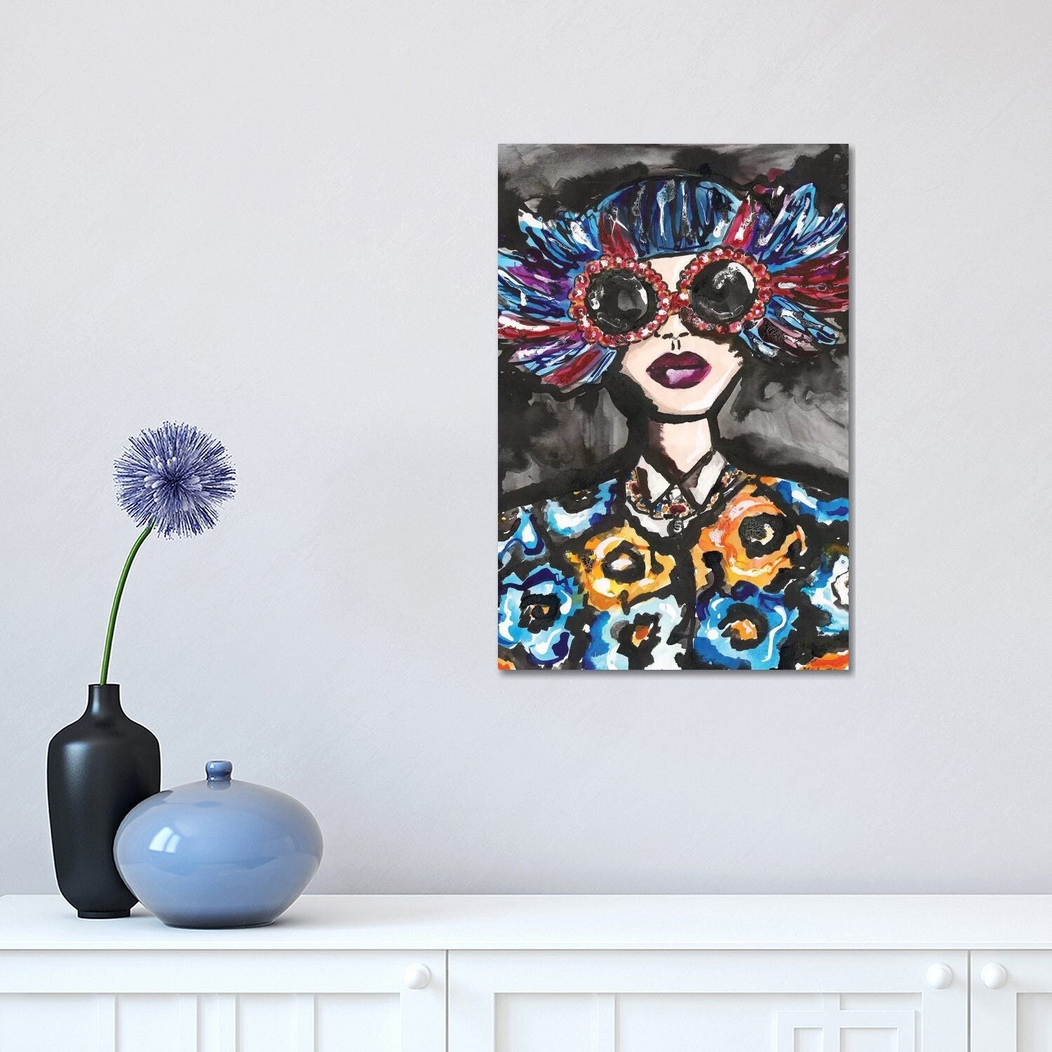 iCanvas "Blue Feather Sunglasses" by Kahri Canvas Print