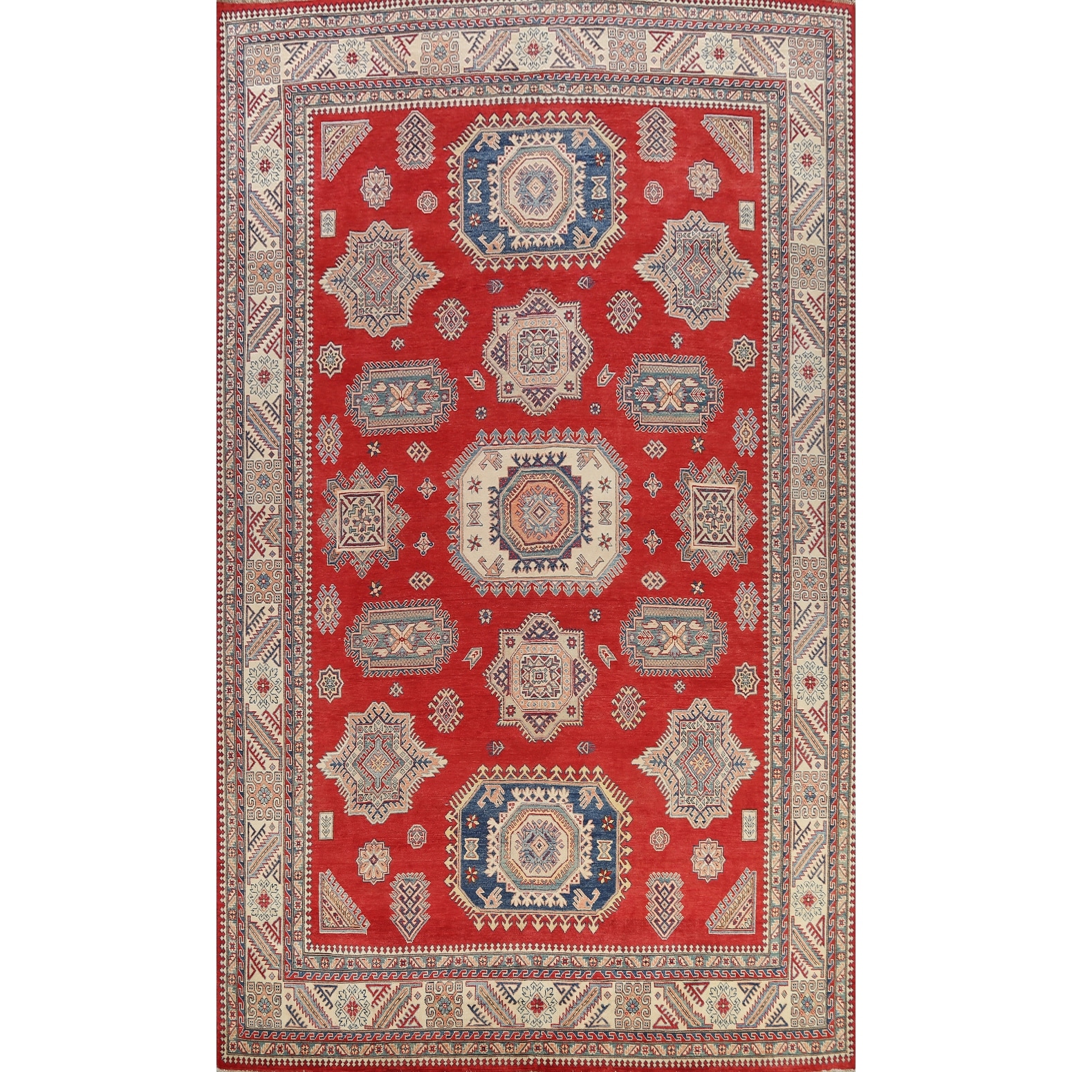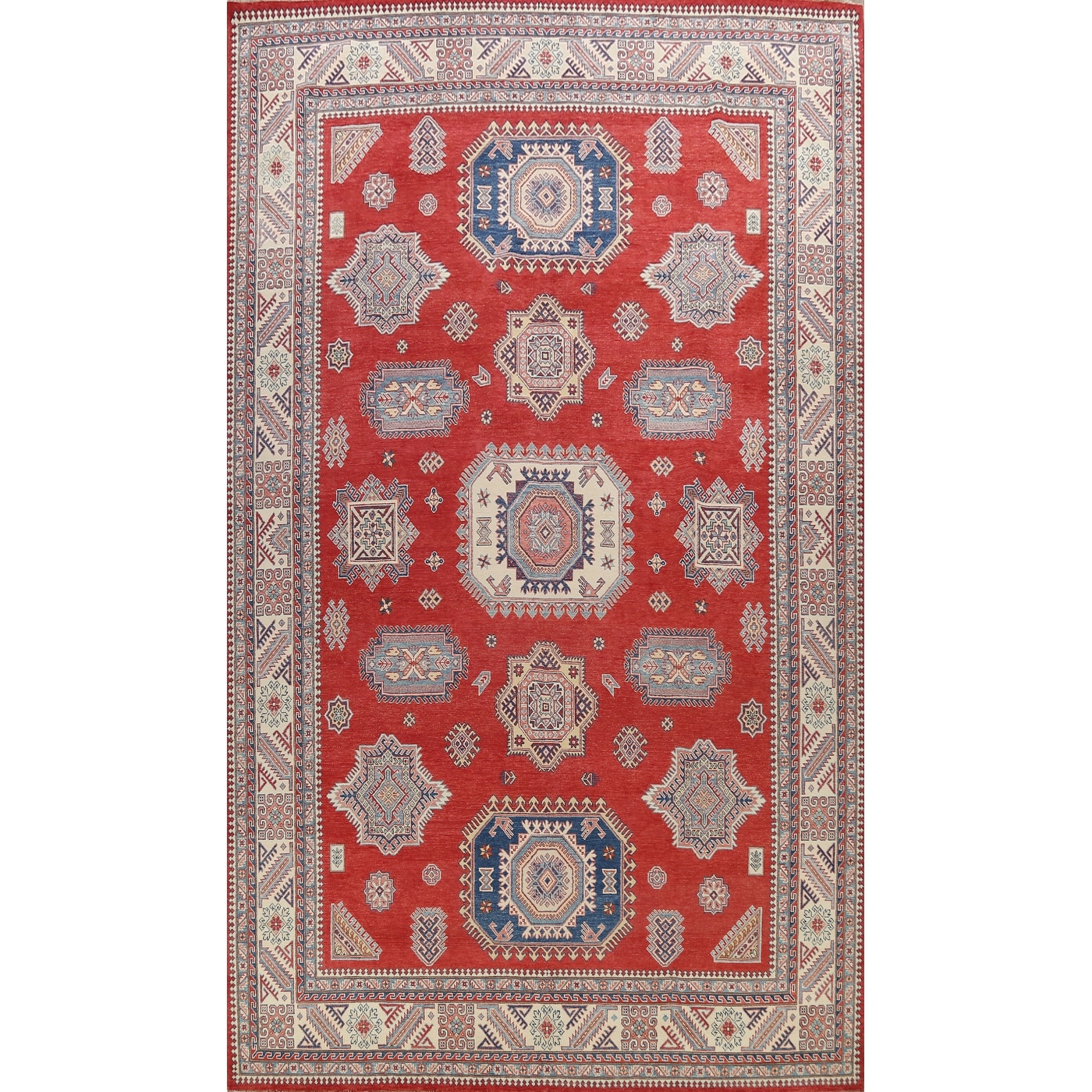 Vegetable Dye Super Kazak Oriental Geometric Area Rug Handmade - 9'11" x 13'10"