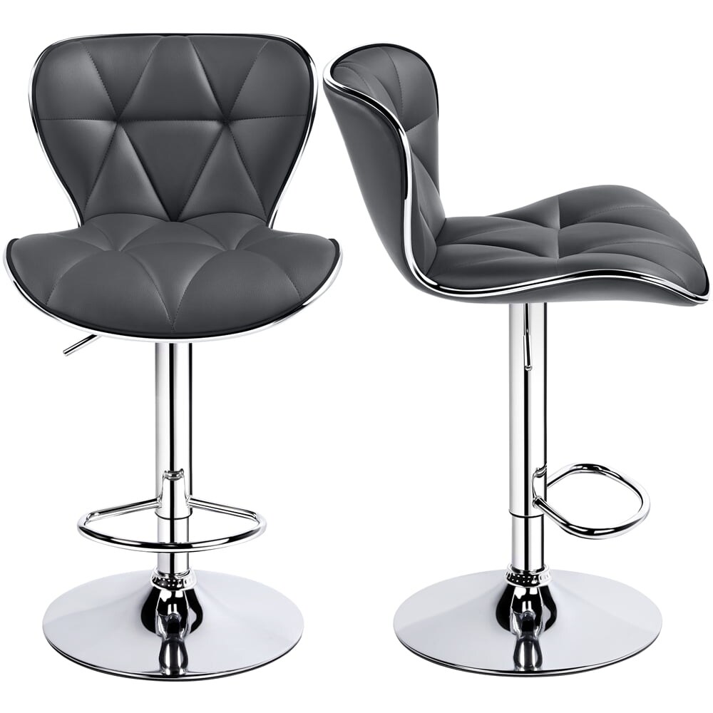 2PCS Adjustable PU Leather Bar Stools Home Kitchen Swivel Chair with Shell Back