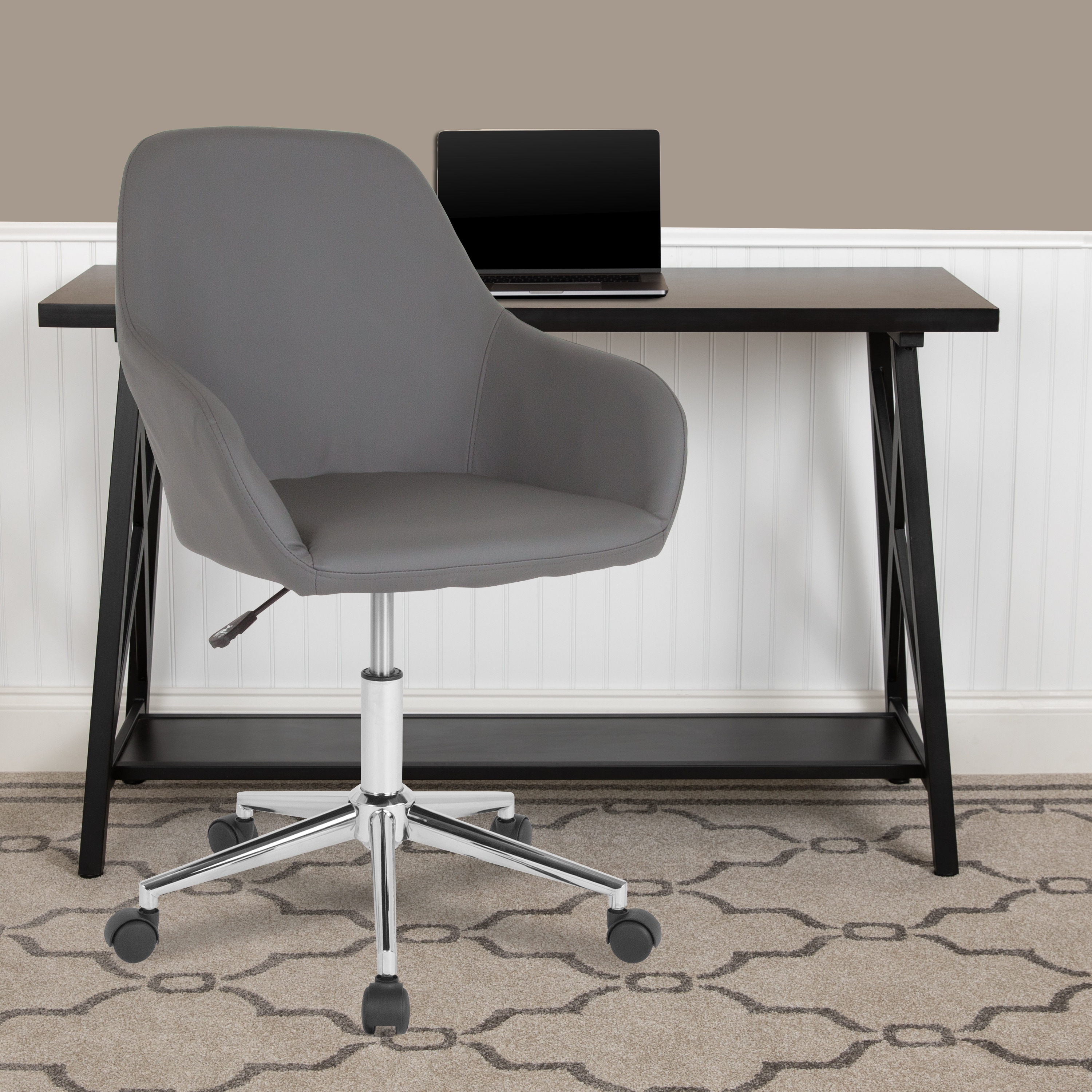 Mid Century Office Chair With Wheels Ergonomic Executive PU Leather Arm Rest Tilt Adjustable Height Swivel Task Computer, Gray