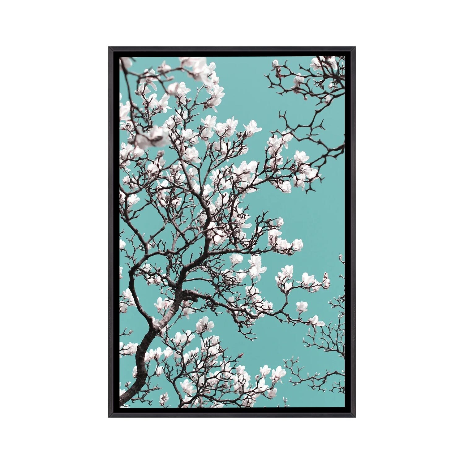 iCanvas "White Magnolia Blossom on Teal Sky" by Alyson Fennell Framed