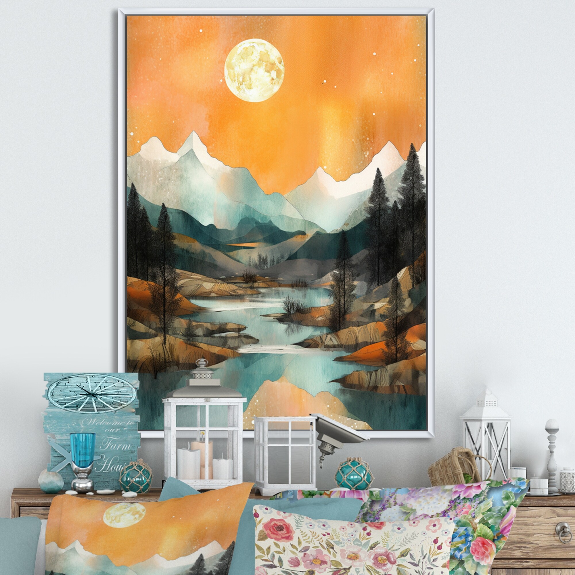 Designart "Teal Bold Mountain I" Lakes & Rivers Framed Canvas Art Print