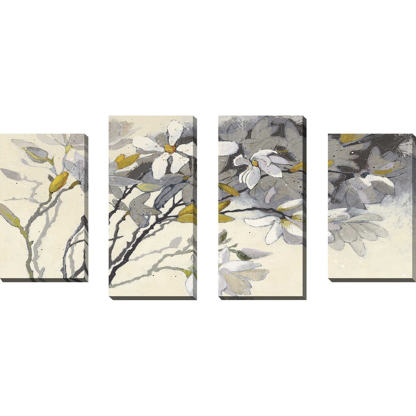 "Magnolias Yellow Gray" Print on Canvas Set of 4