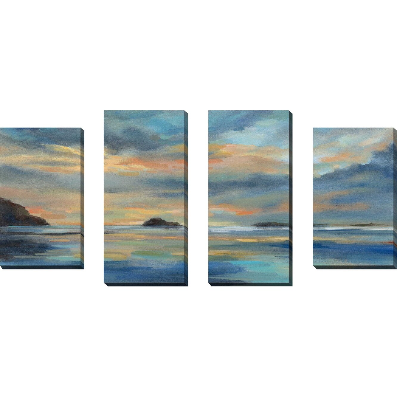 "Setting Sun" by Mike Calascibetta Print on Canvas Set of 4 - Blue