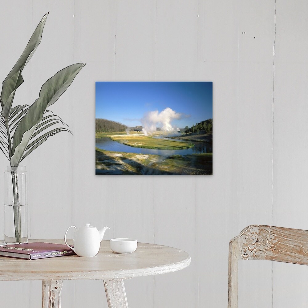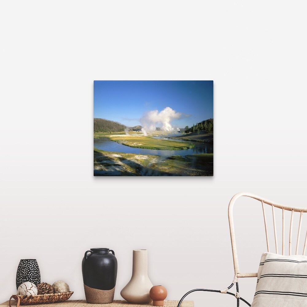 "Wyoming, Yellowstone National Park, Midway Geyser Basin, Steam erupting from the thermal pool" Canvas Wall Art