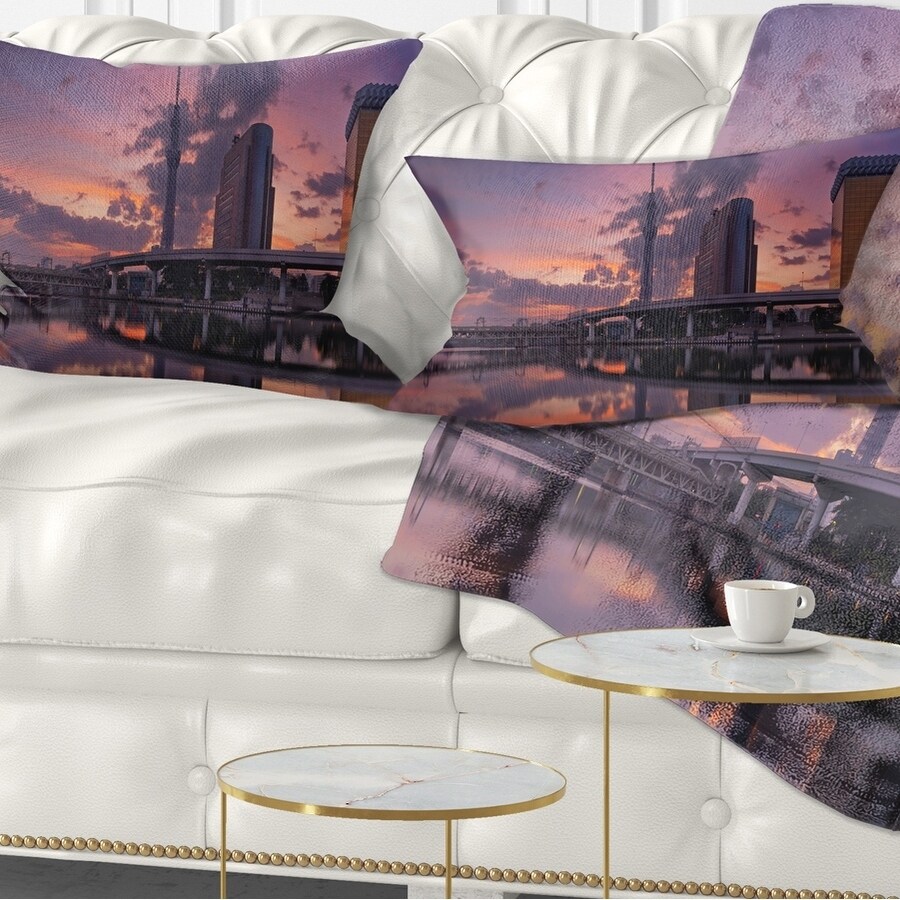 Designart 'Tokyo Sky Tree and Sumida River' Landscape Printed Throw Pillow