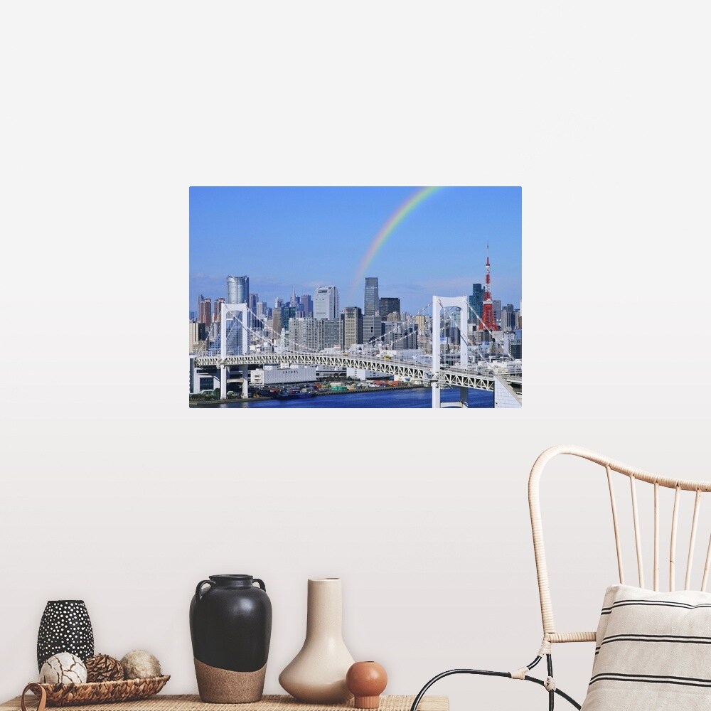 "Skyline of Tokyo and Rainbow bridge, Tokyo Prefecture, Honshu, Japan" Poster Print - Multi