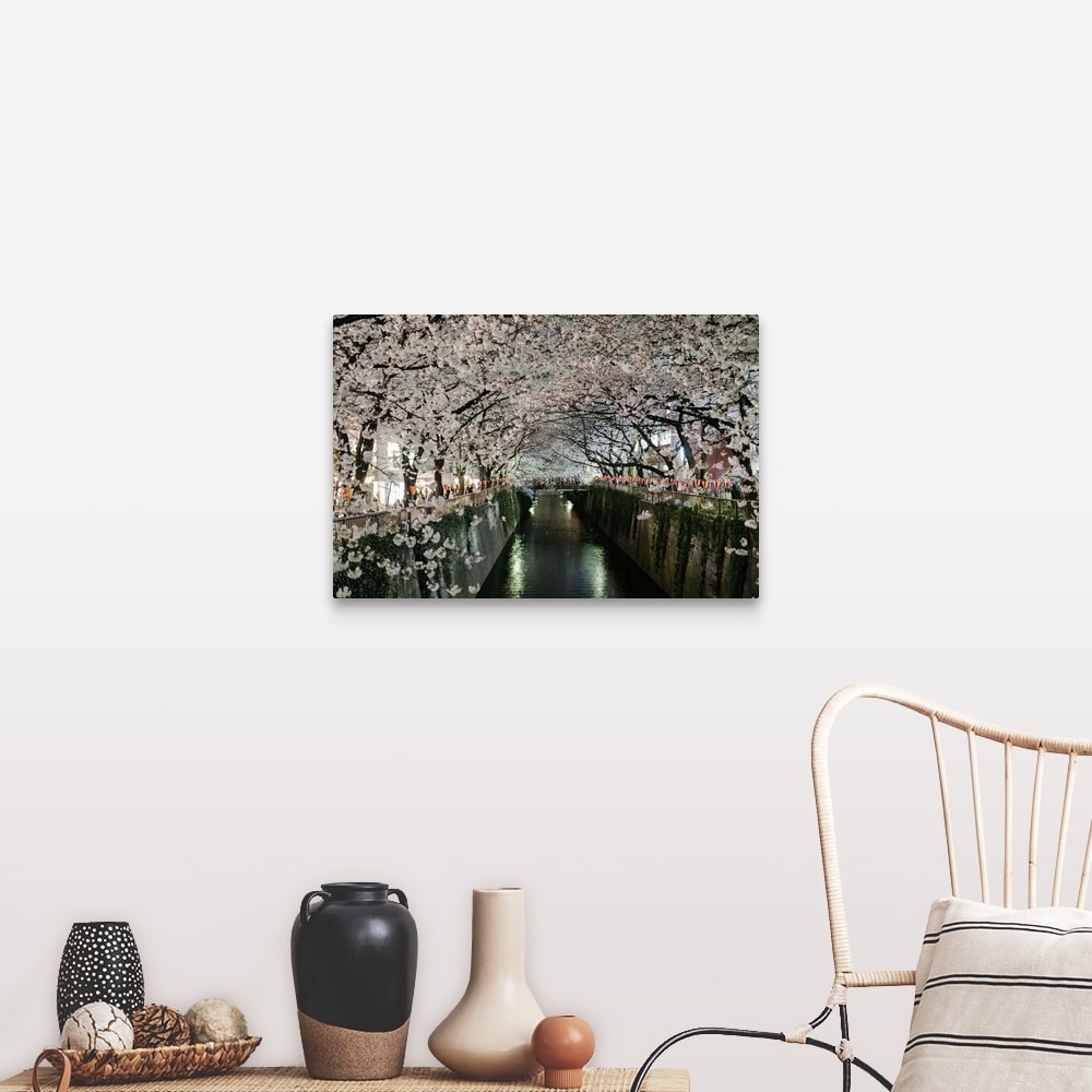 "Cherry blossoms over Meguro River, Tokyo, Japan" Canvas Wall Art