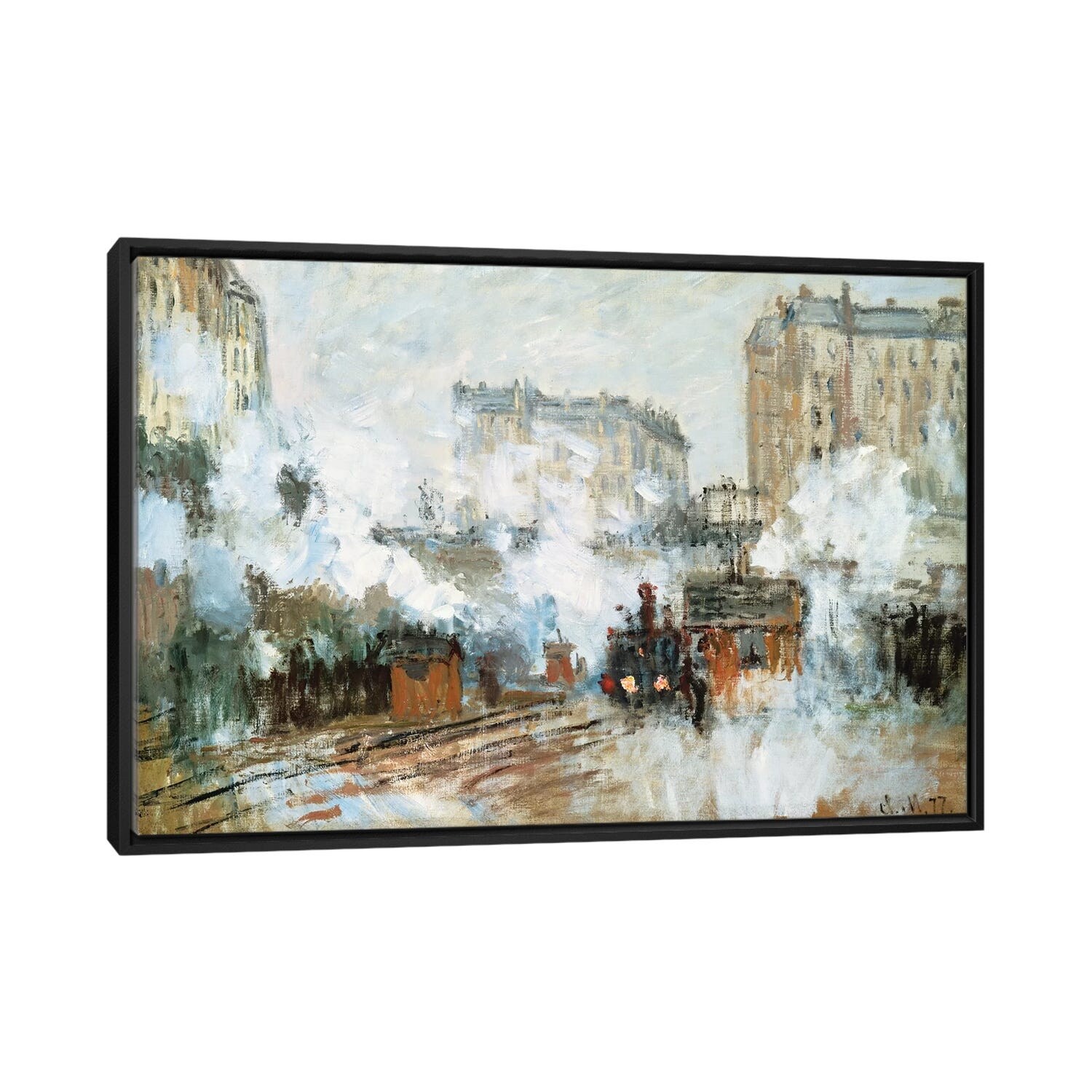 iCanvas "Exterior of the Gare Saint-Lazare, Arrival of a Train, 1877 " by Claude Monet Framed Canvas Print