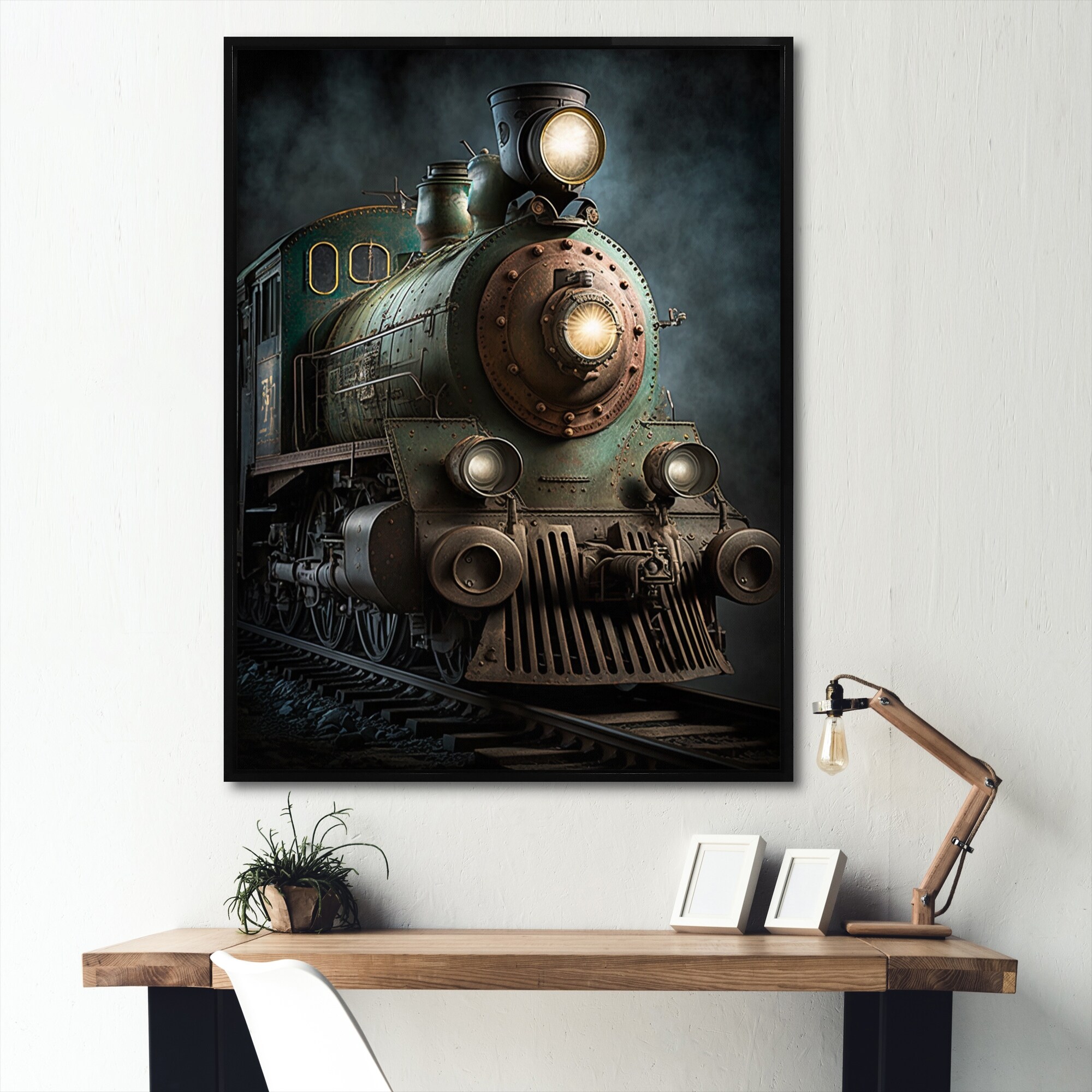 Designart "Retro Steam Train" Landscape Photography Framed Canvas Art Print