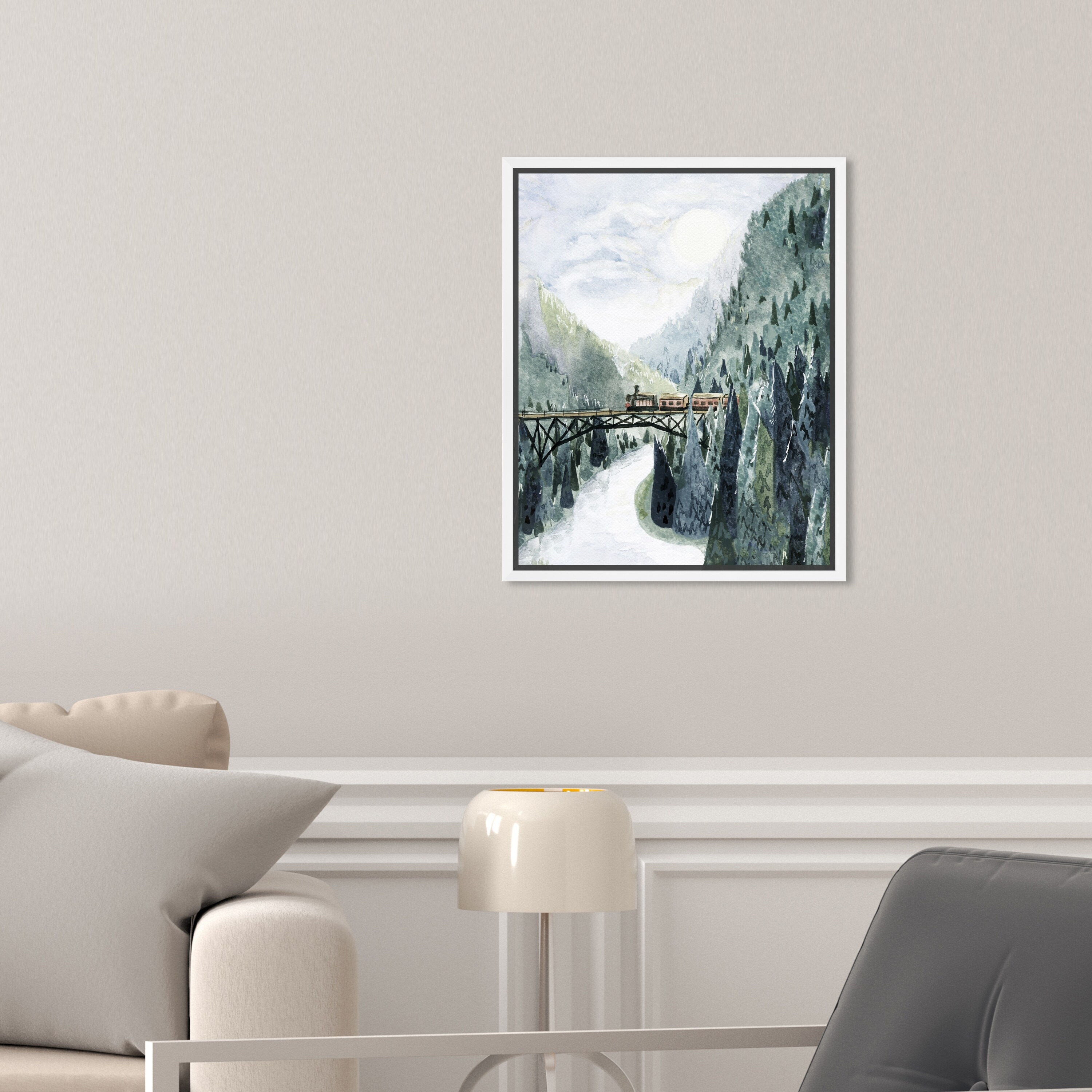 Oliver Gal 'Morning Train Muted' Nature and Landscape Wall Art Framed Canvas Print Forest Landscapes - Green, Blue