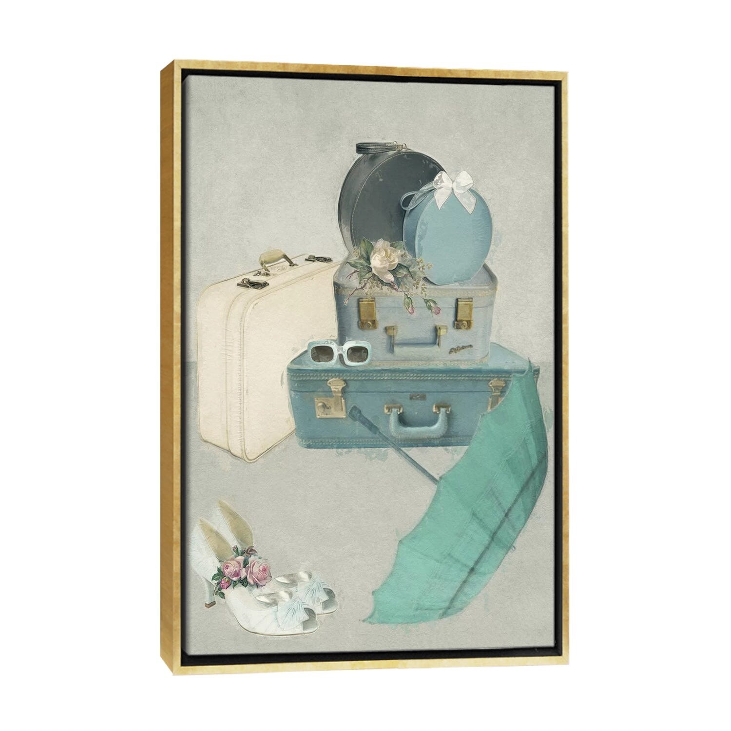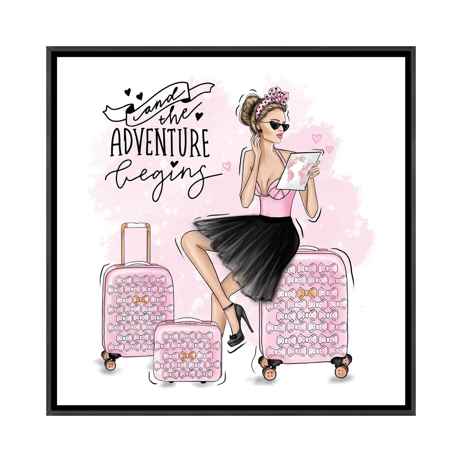 iCanvas "Travel Girl With Pink Suitcases" by Criss Rosu Framed