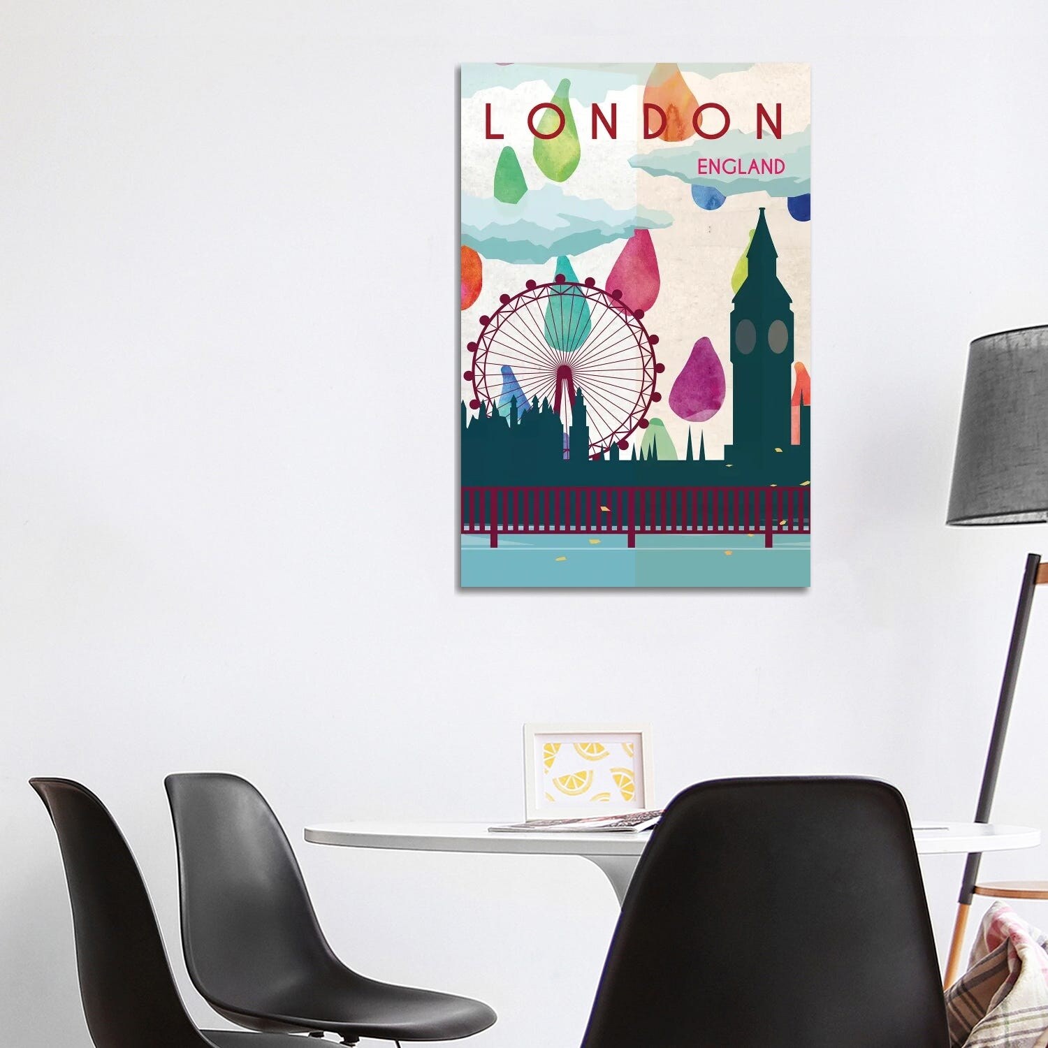 iCanvas "London Rain Travel Poster" by Natalie Ryan Canvas Print