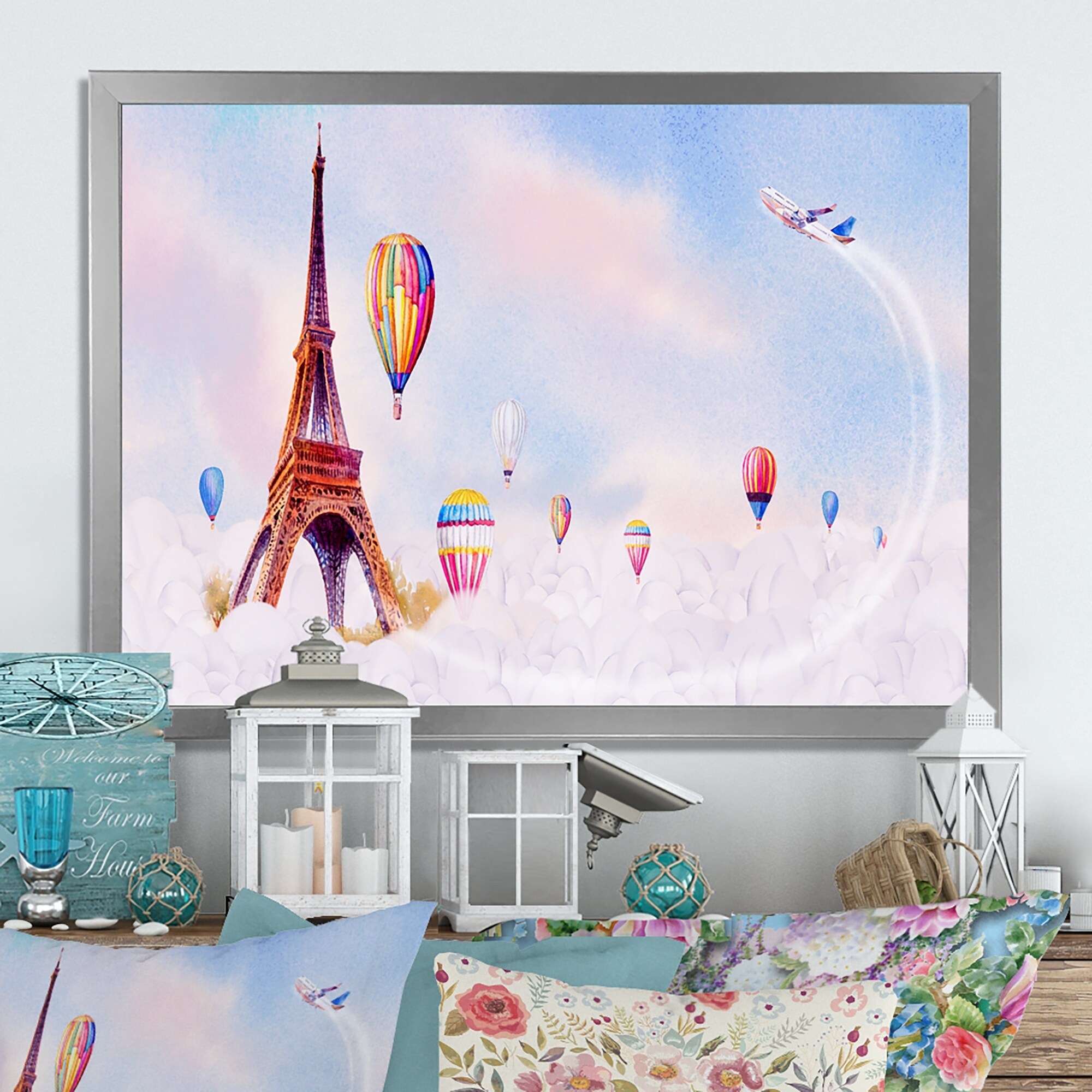Designart "Travel In Balloon Over Paris" French Country Framed artwork