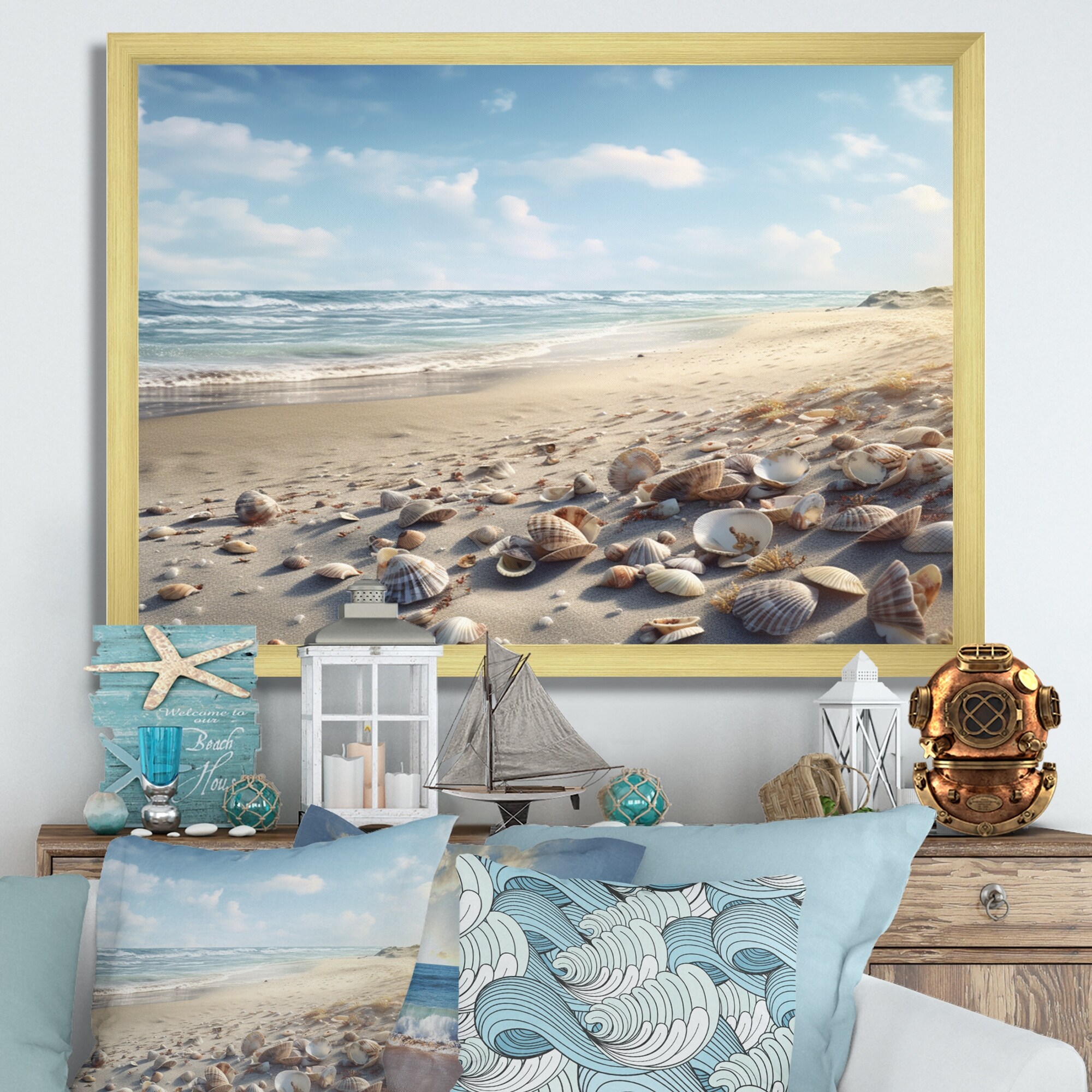 Designart "Seaside Seashell Treasures Ii" Modern Landscape Beach Framed Wall Decor