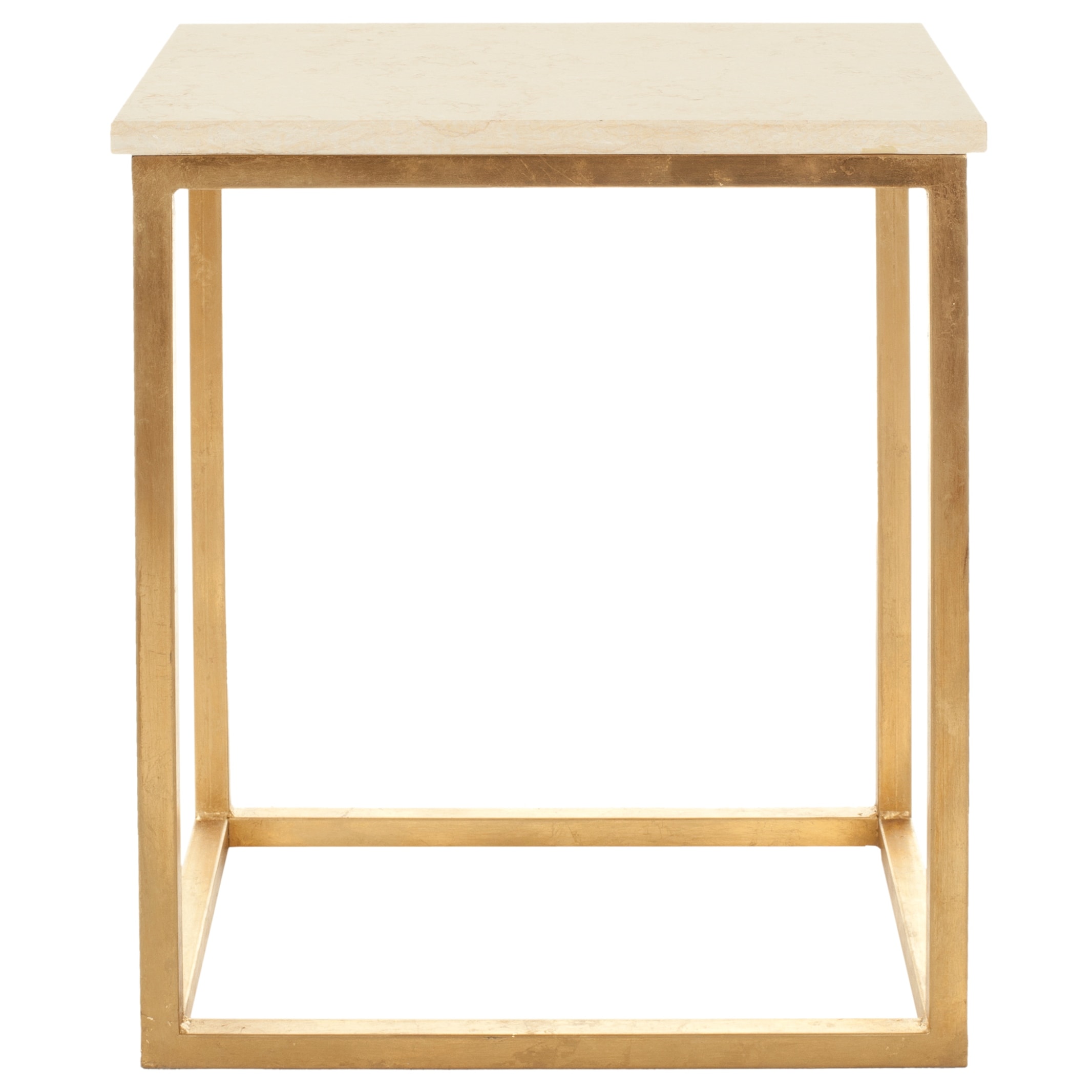 SAFAVIEH Hidden Treasures Ivory Granite Brass Accent Table - 17" x 12.4" x 20.7"