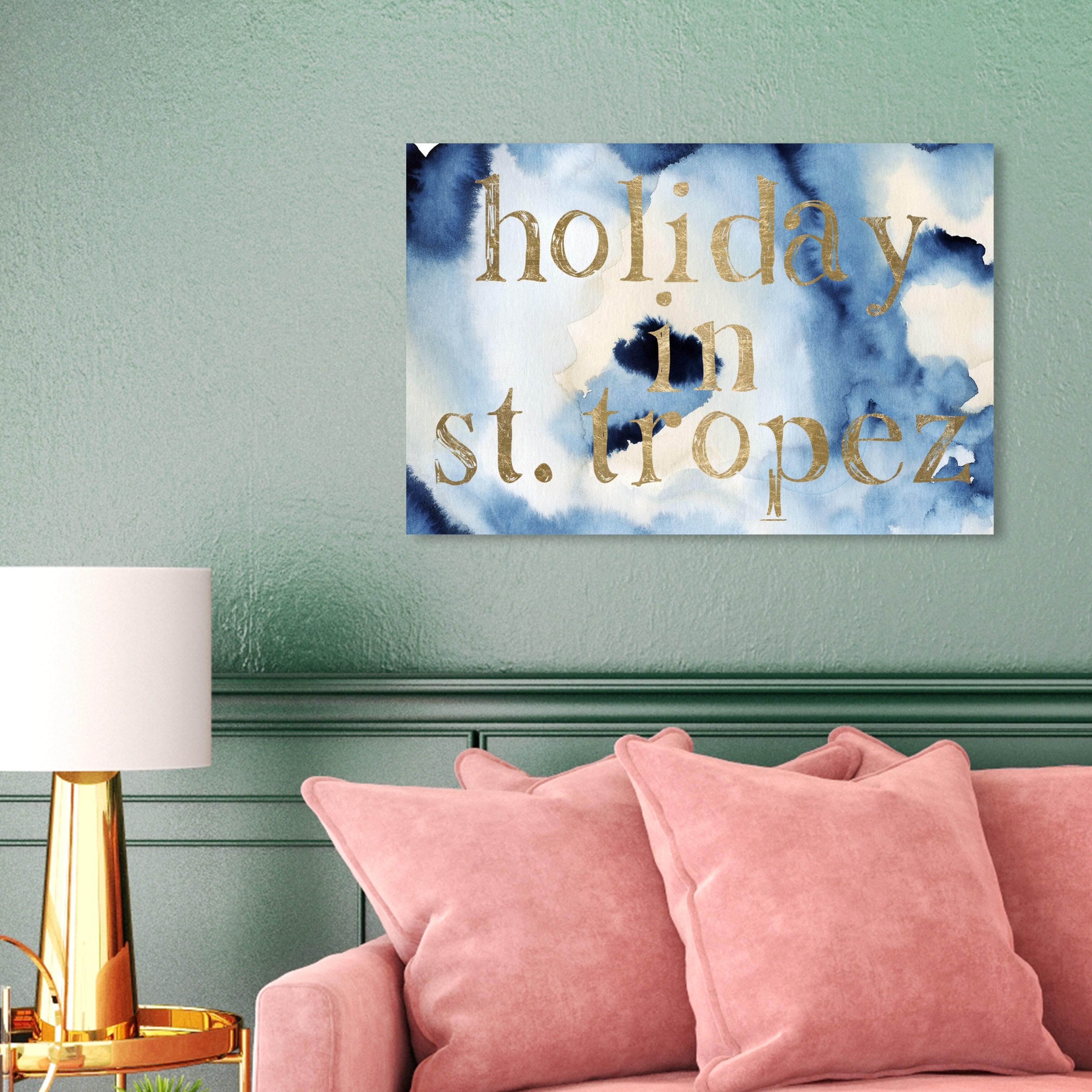 Oliver Gal 'Vacation Time Blue' Typography and Quotes Wall Art Canvas Print - Gold, Blue