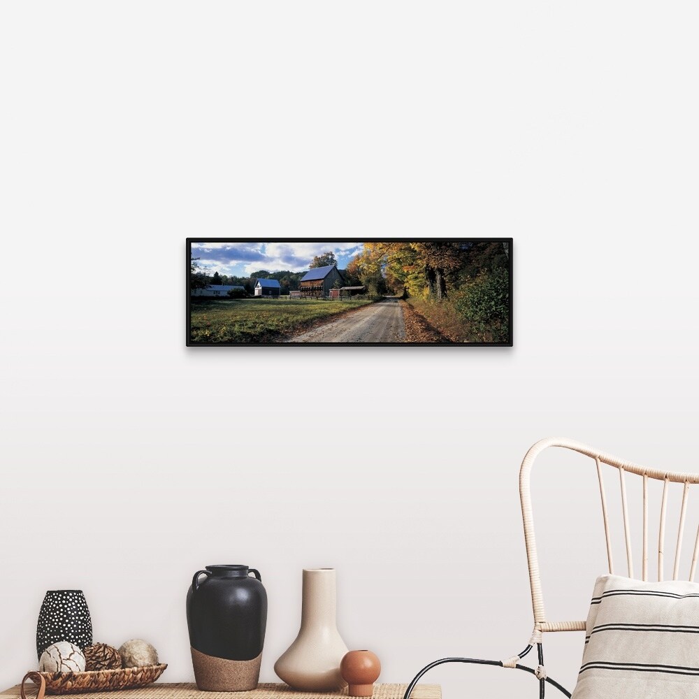 "Country road along a farm, Vermont, New England" Black Float Frame Canvas Art