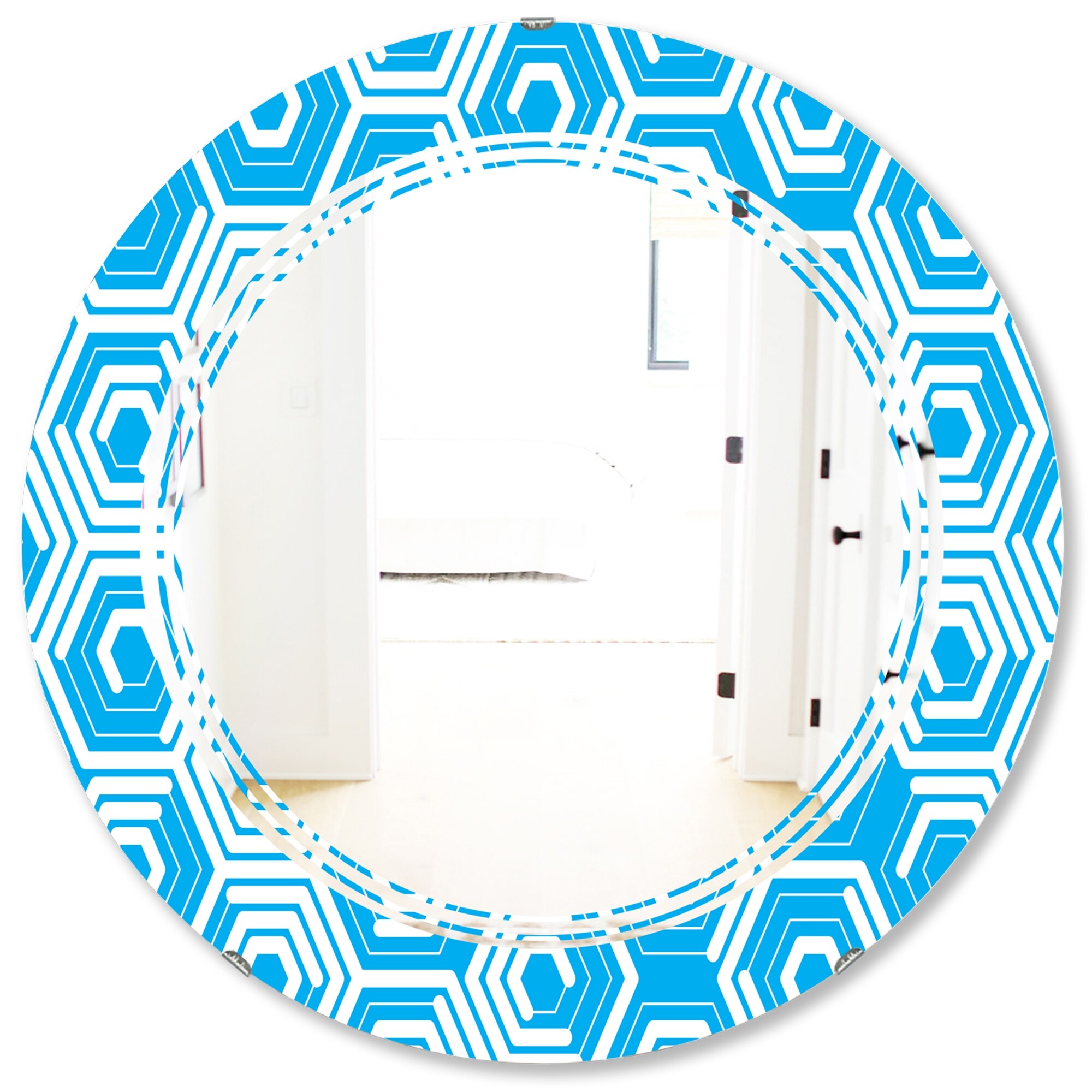 Designart 'Retro Hexagon Pattern VII' Printed Modern Round or Oval Wall Mirror - Triple C