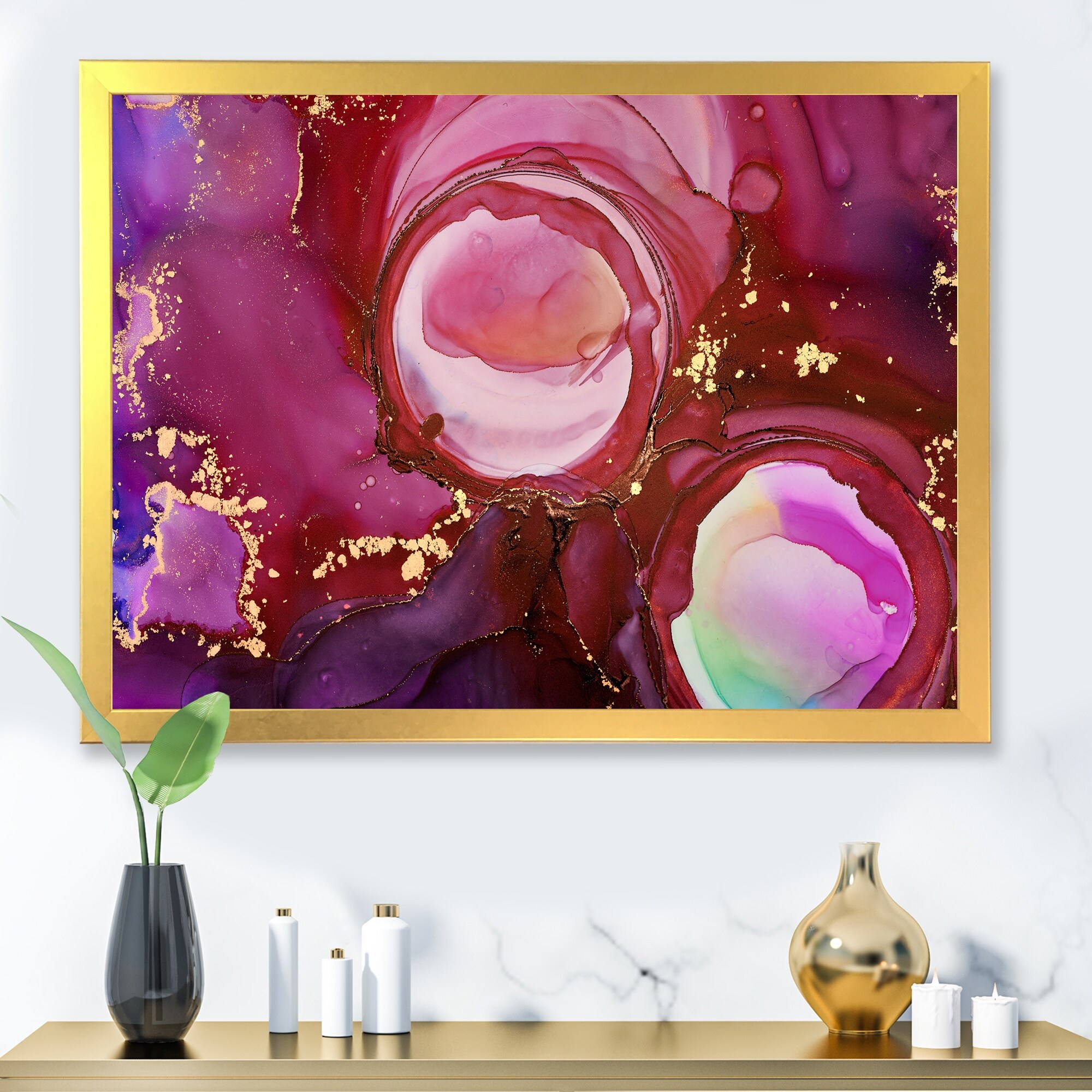 Designart "Subtle Sophistication in Exquisite Pink And Gold VII" Abstract Liquid Ink Framed Canvas Wall Art Print
