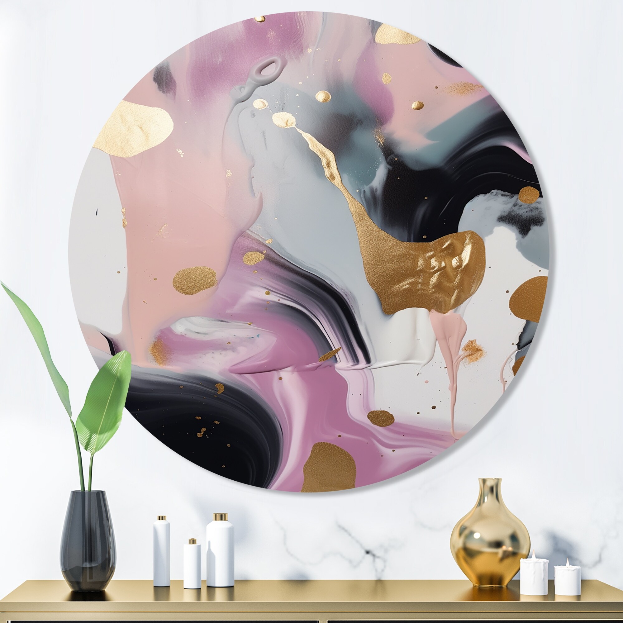 Designart "Pink And Gold Mysterious Marble VII" Abstract Marble Metal Round Wall Art