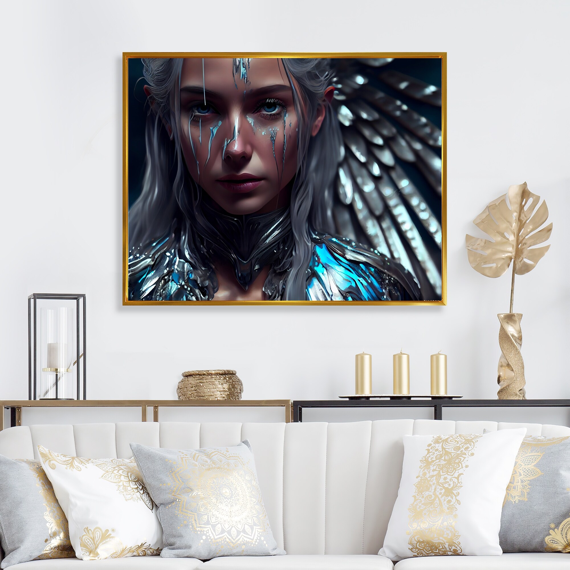 Designart "Silver Ice And Blue Archangel VII" Contemporary Glam Framed Canvas Art Print