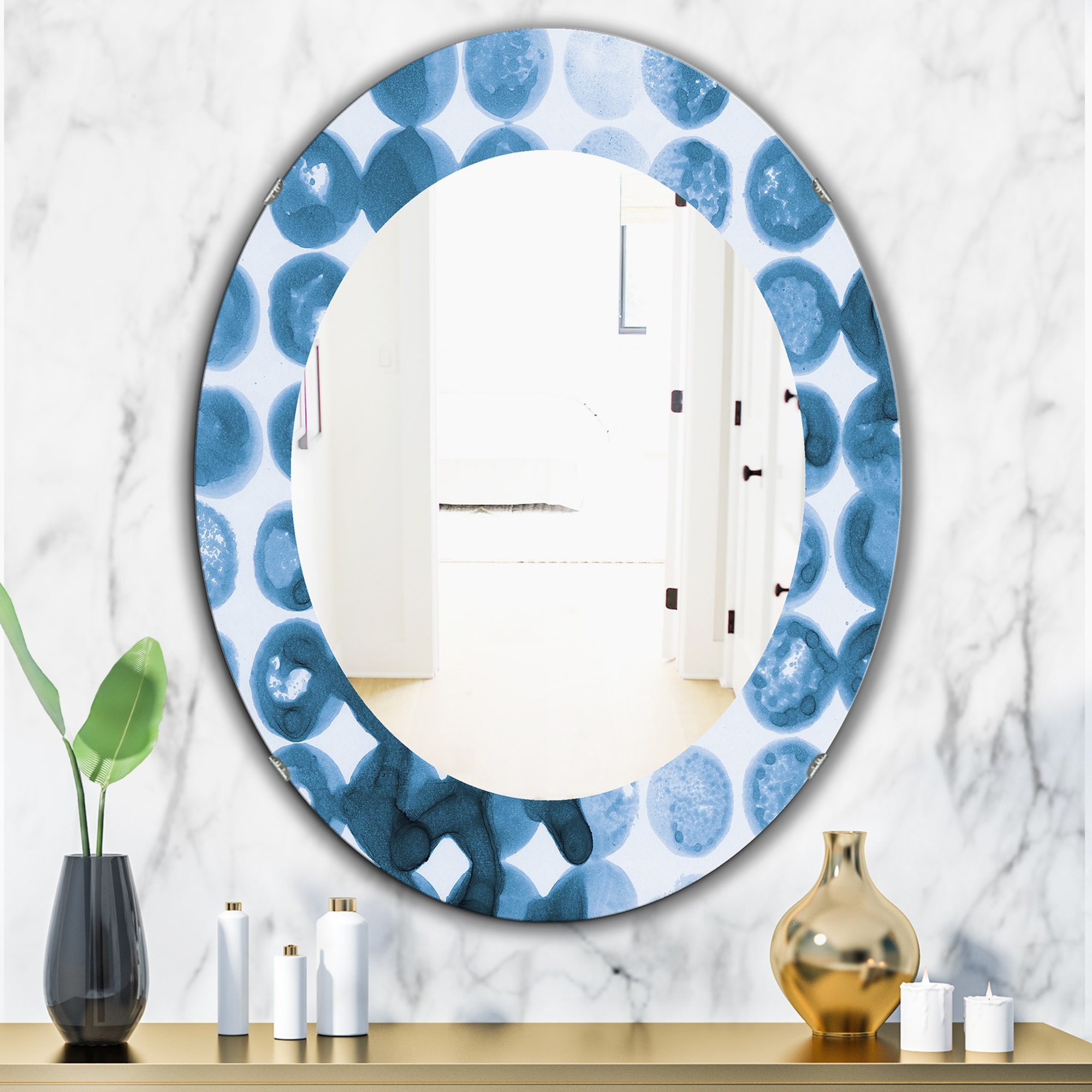 Designart 'Indigo Watercolor Geometrical VII' Printed Mid-Century Oval or Round Wall Mirror - Blue