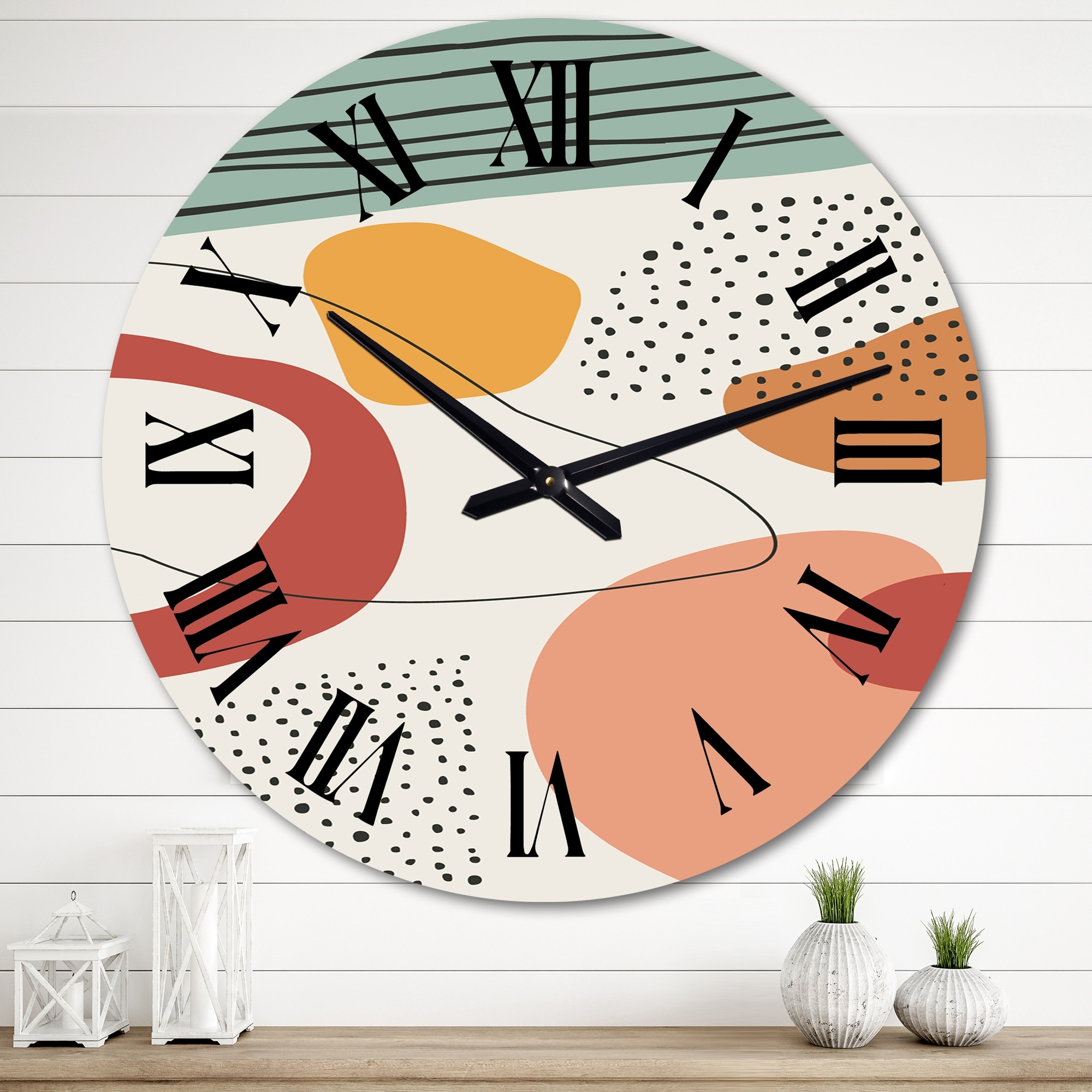 Designart, 'Organic Shapes With Abstract Ornaments VII' Mid-Century Modern wall clock