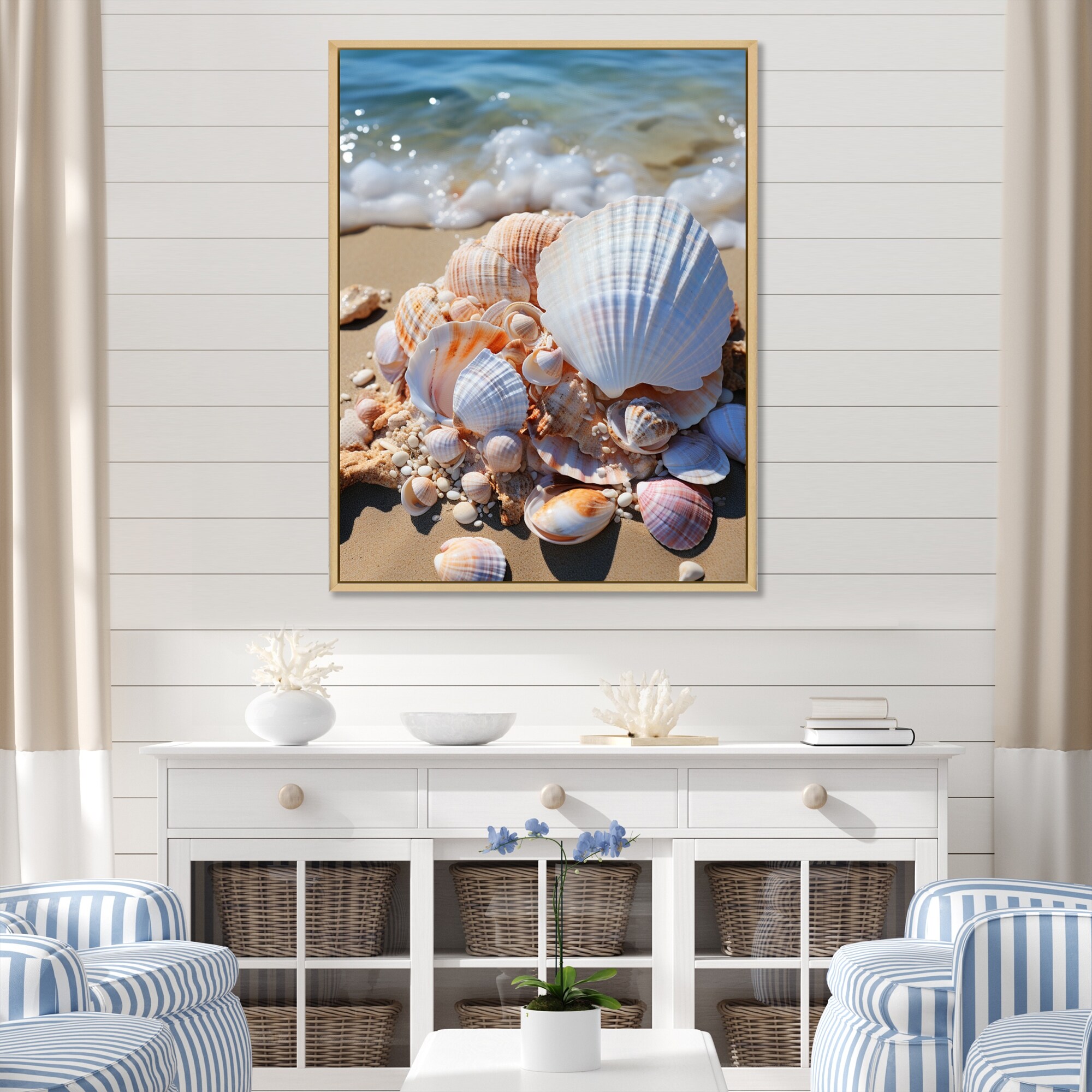 Designart "Beach Photo Seashell Beauty VII" Coastal Animal Framed Canvas Art Print