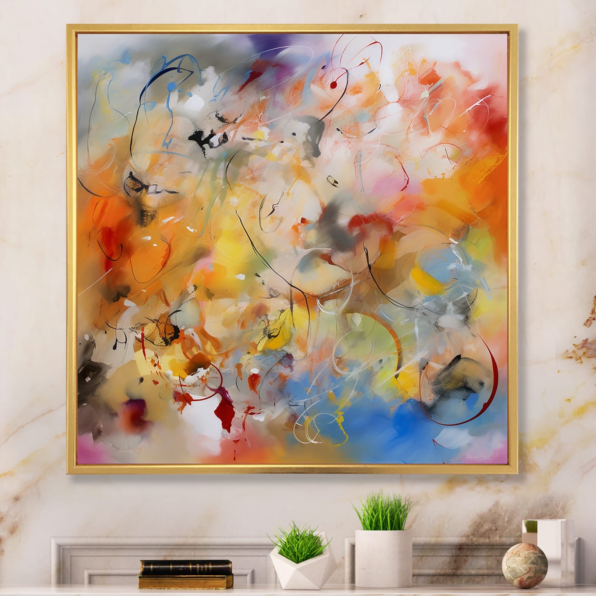Designart "Blue, Yellow and Orange Colorful Whirls VII" Minimalism Framed Canvas Prints