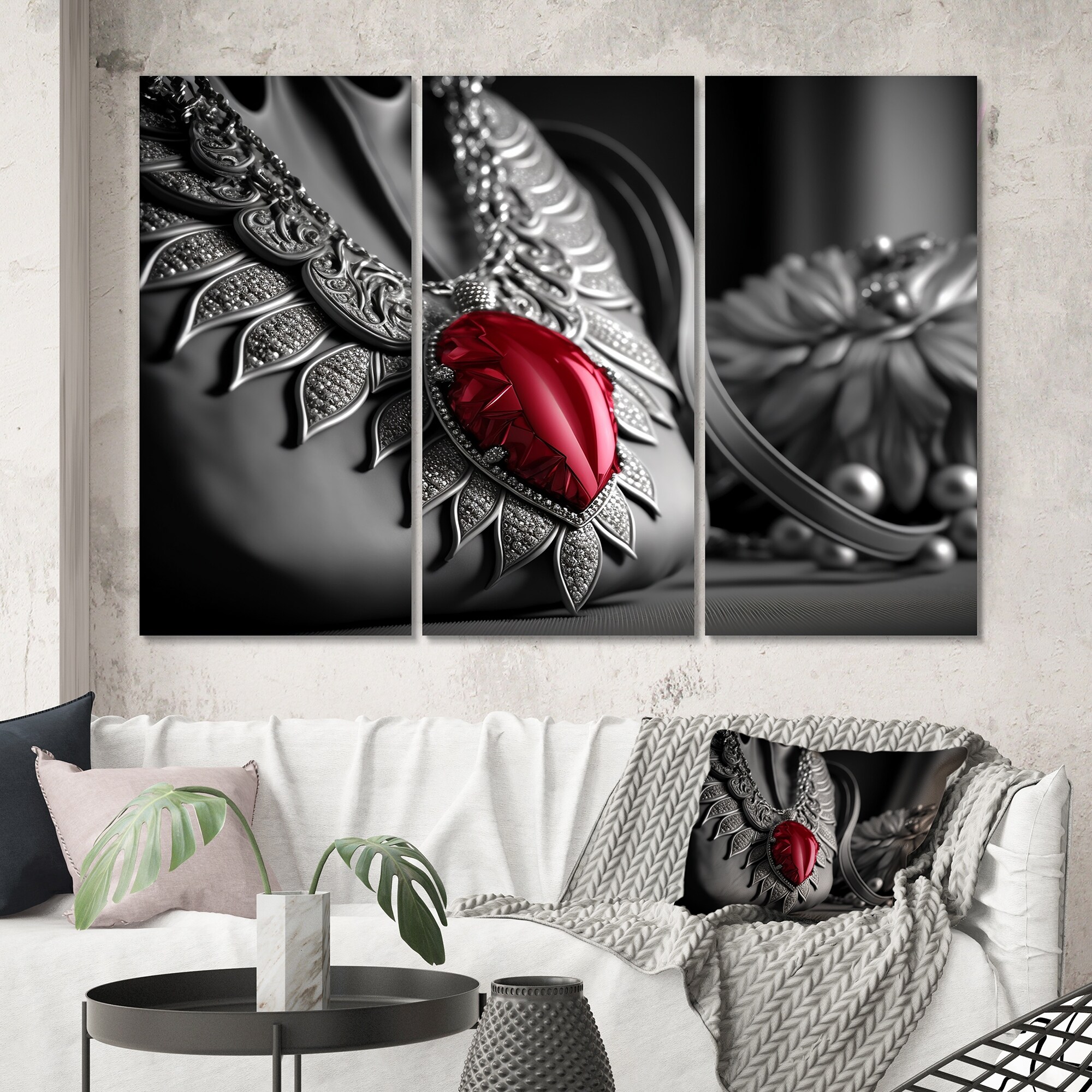 Designart "Vintage Glam Accessories in Red and Black VII" Fashion Canvas Wall Art Print