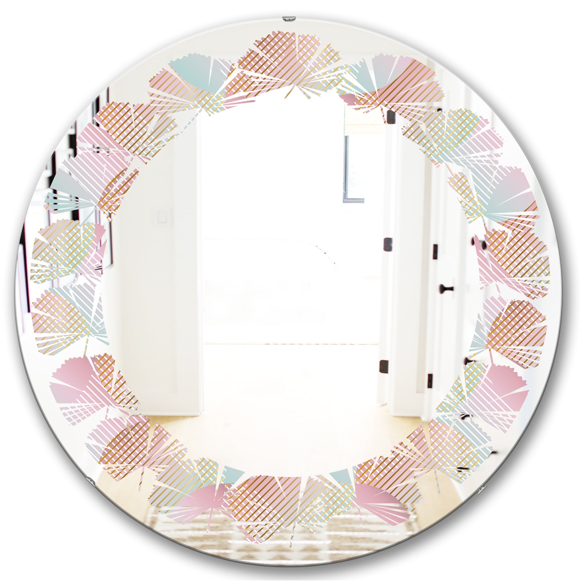 Designart 'Abstract Design Retro Pattern VII' Printed Modern Round or Oval Wall Mirror - Leaves