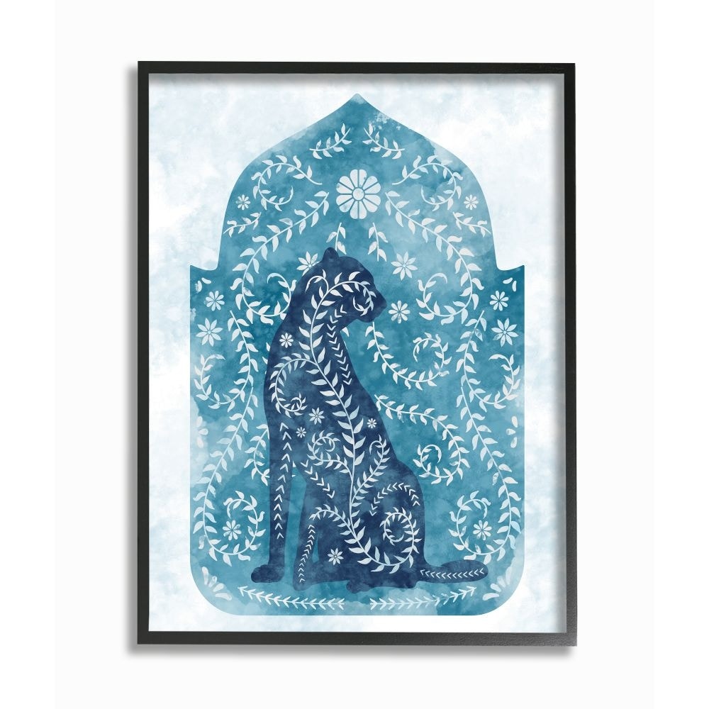 Stupell Regal Cheetah Jungle Animal Vines Blue Arabesque Watercolor Framed Wall Art