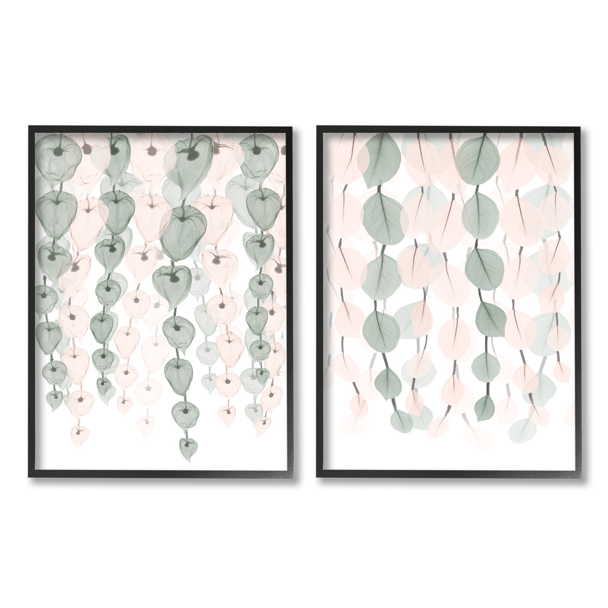 Stupell Translucent Hanging Vines Green Pink Foliage, 2pc Multi Piece Framed Wall Art Set