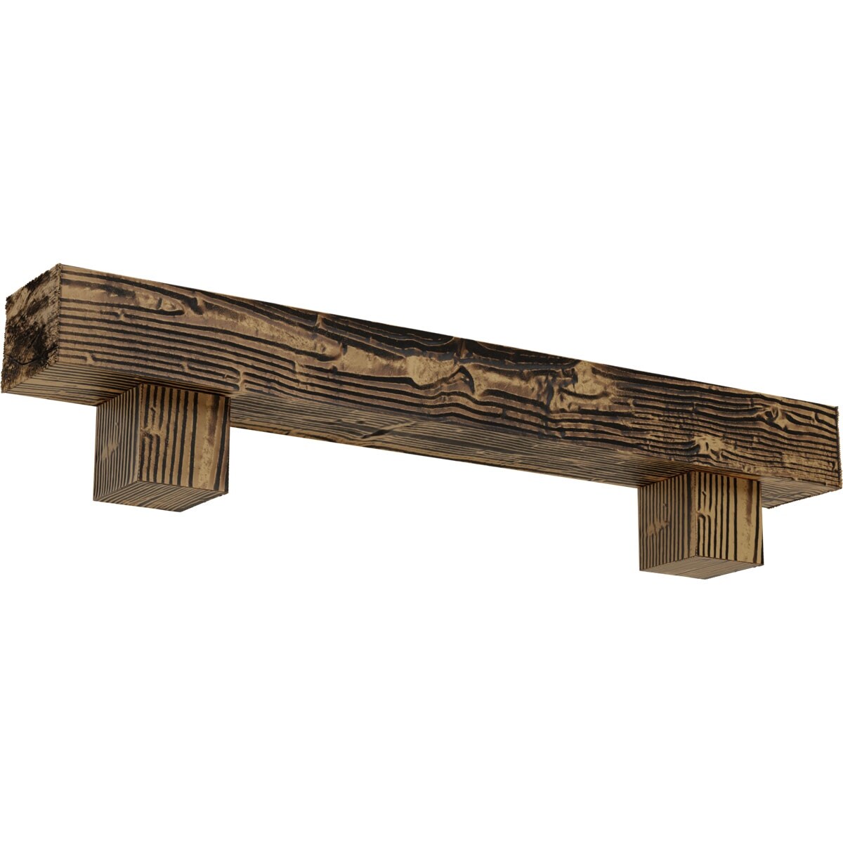 60"W Hand Hewn Faux Wood Fireplace Mantel Kit w/ Breckinridge Corbels