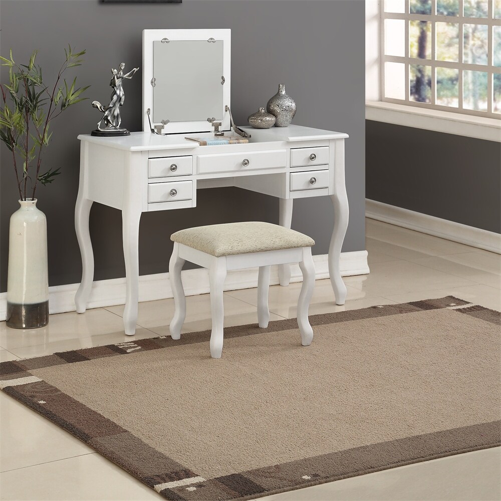 Classic Vanity Set w/ Stool Drawers Open-up Mirror Bedroom Furniture