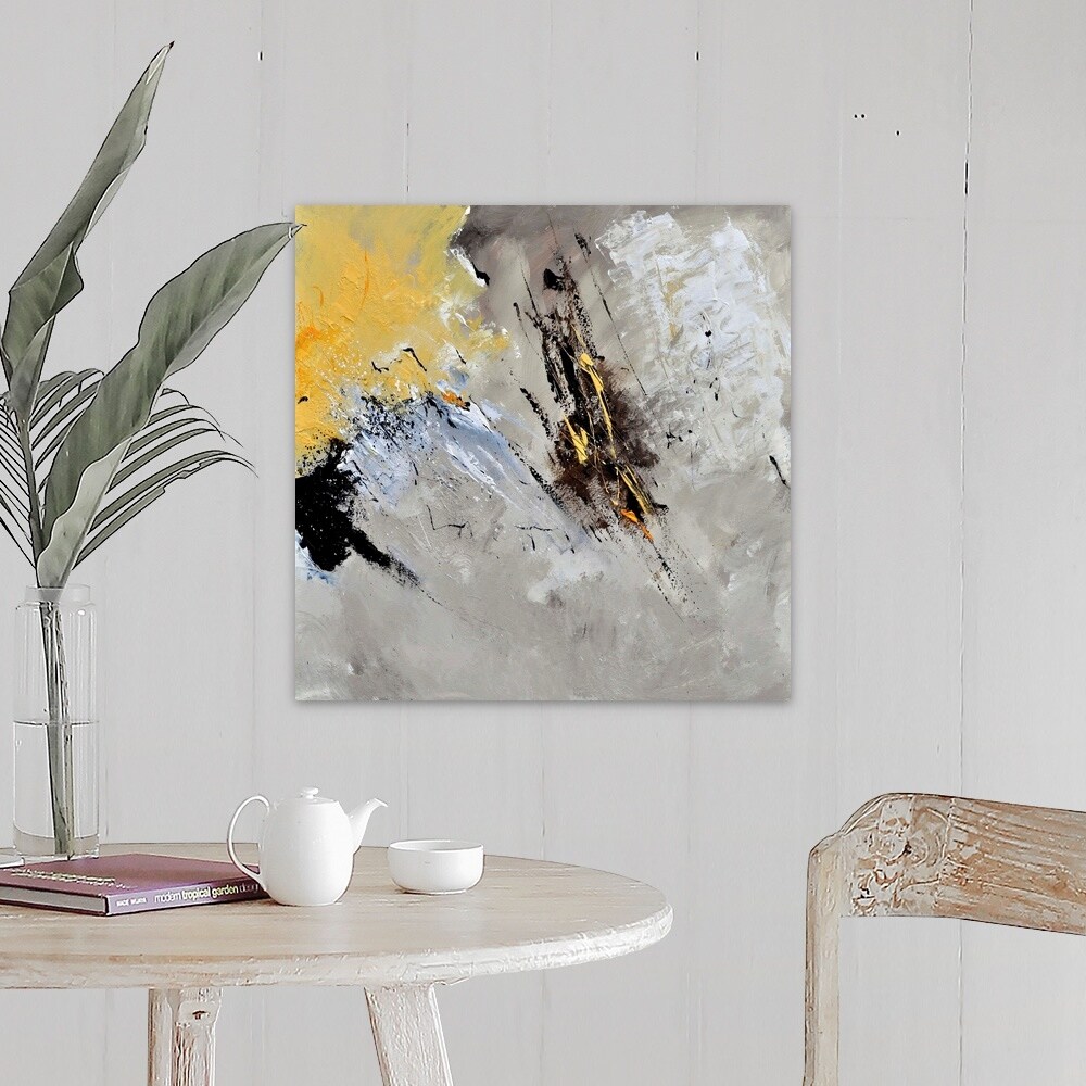 Designart "Jazz Rhythms in Shades of Gray III" Abstract Liquid Ink Framed Canvas Wall Art Print