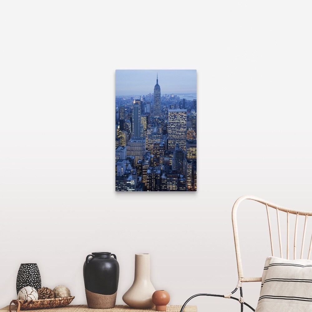 Designart "Blue And Yellow Drama of a Stormy Night City I" City Art Deco Framed Wall Art for Living Room