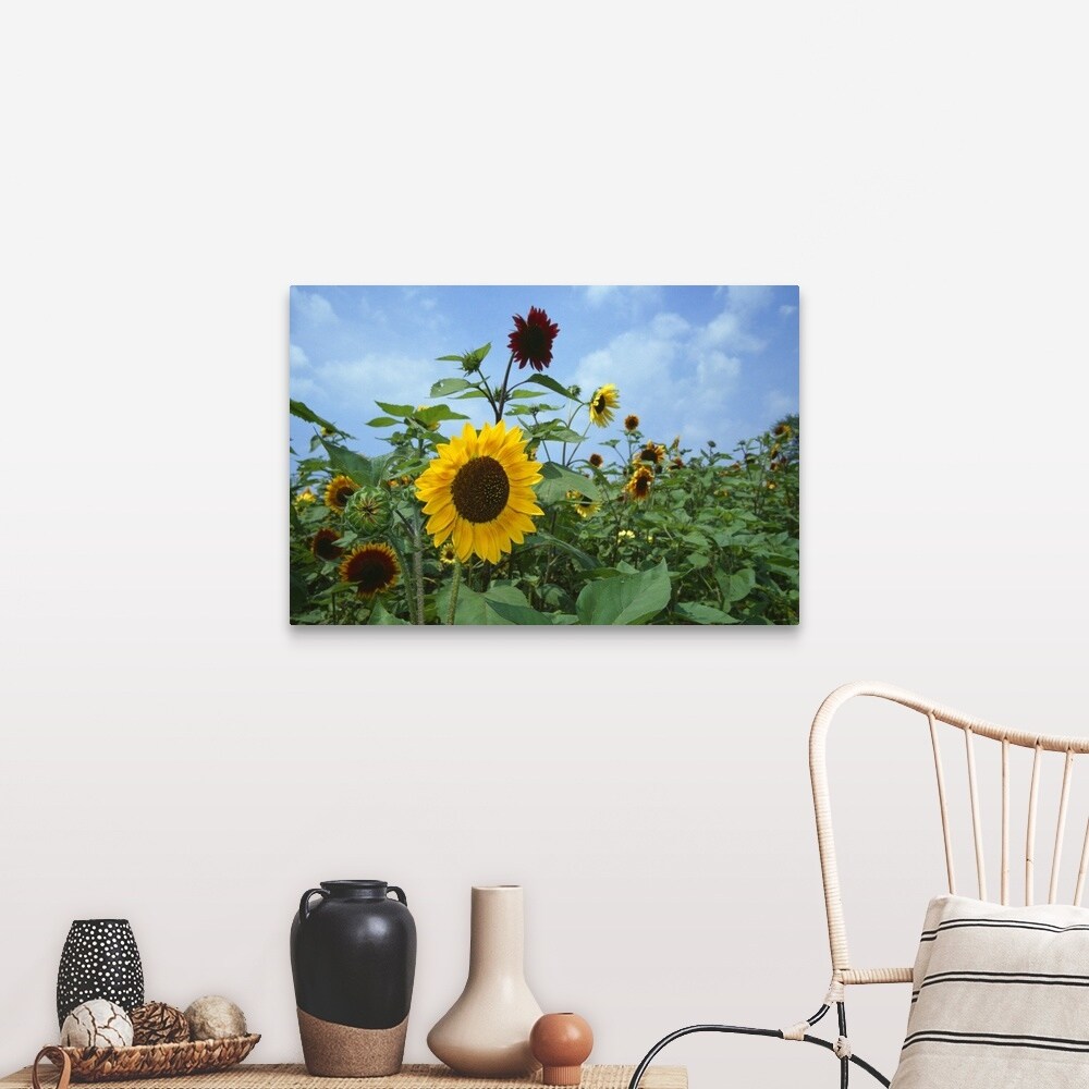 "Sunflowers (Helianthus annuus) blooming in field, New York" Canvas Wall Art