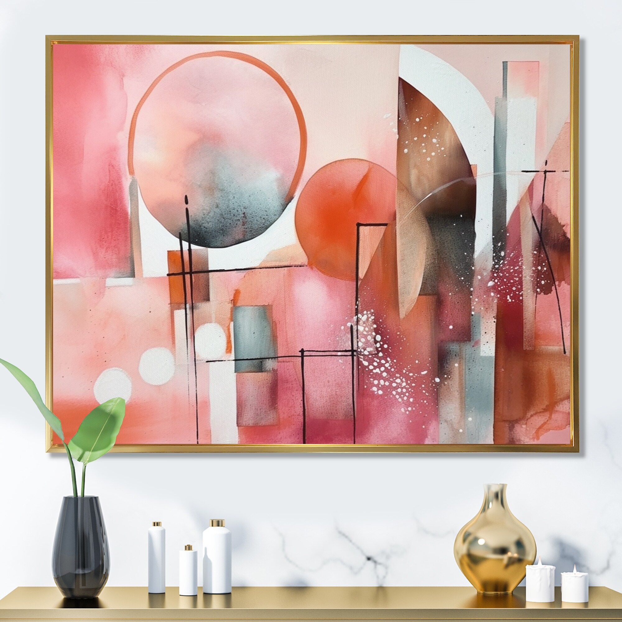 Designart "Pink Abstracted Harmonies of Shape I" Modern Geometric Framed Wall Art Prints