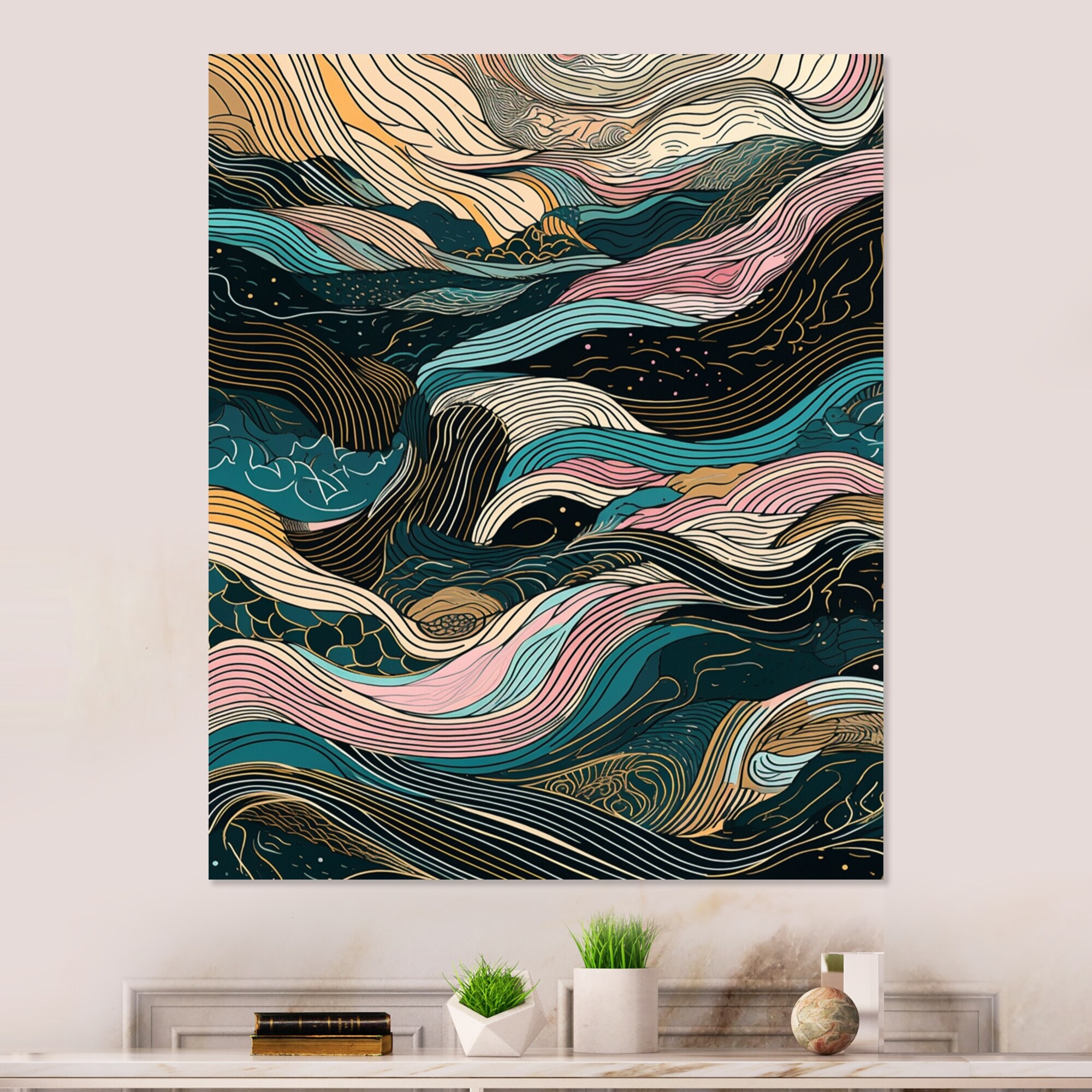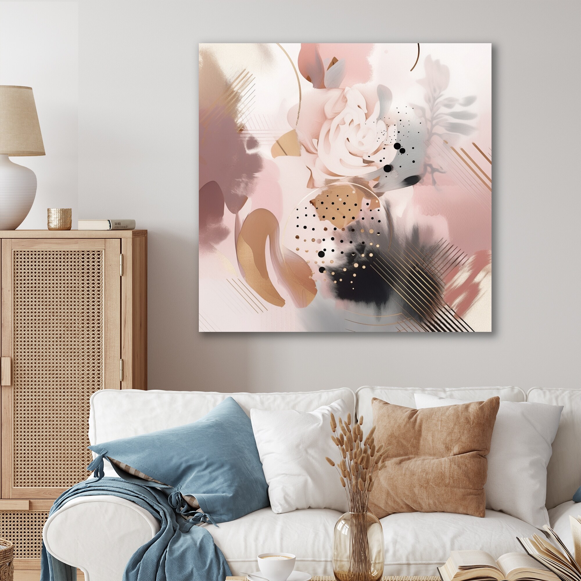 Designart "Pink Rosegold Stripes Complexity III" Modern Shapes Transitional Metal Wall Art