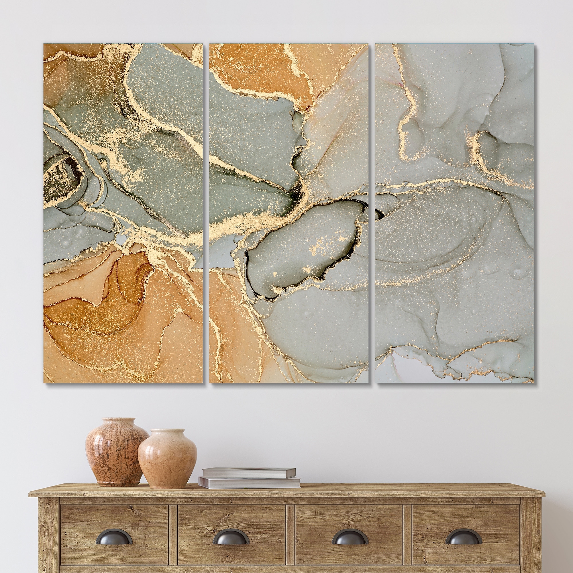 Designart "Brown Luxury Abstract Fluid Art IV" Modern Canvas Wall Art Print