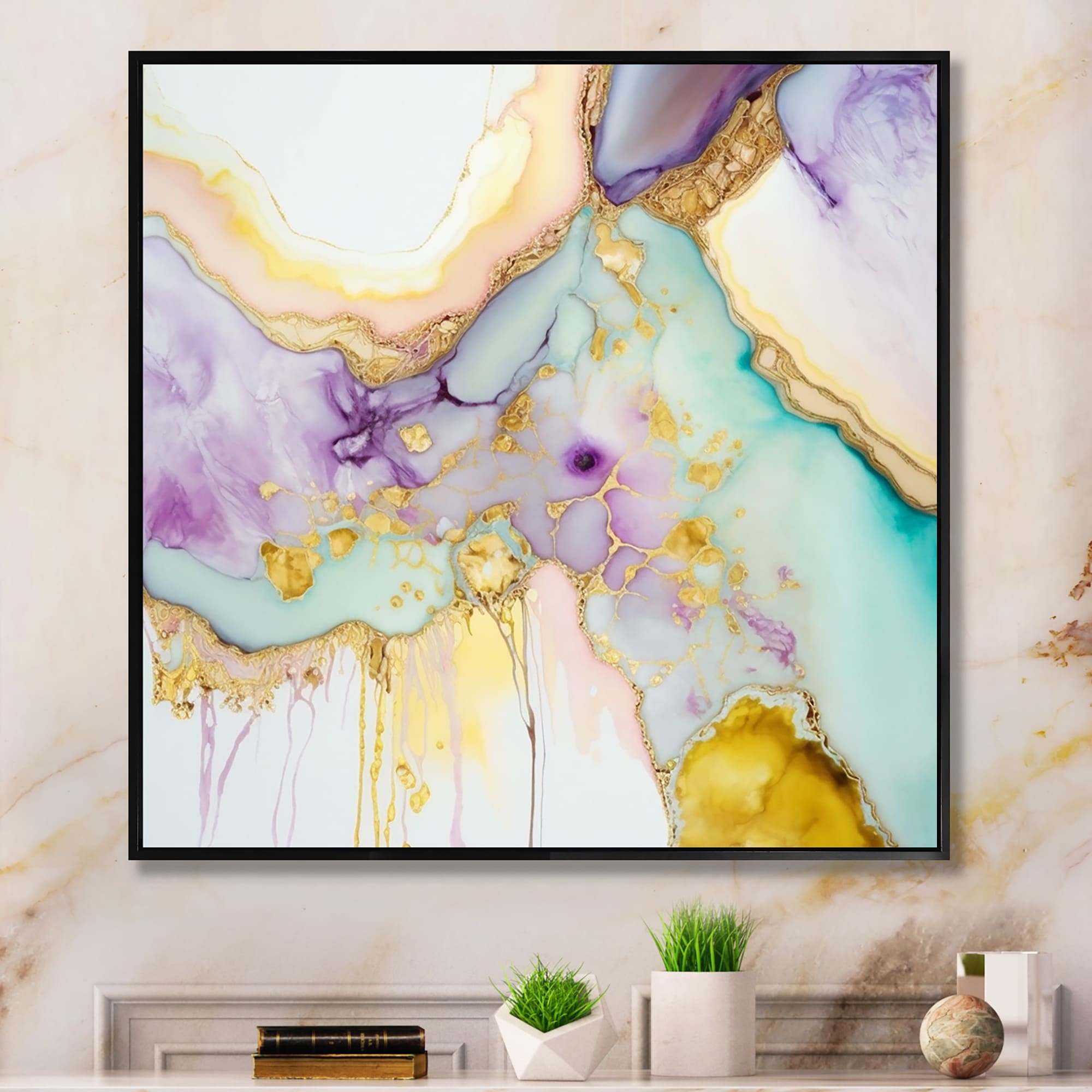 Designart "Liquid Universe With A Touch of Gold III" Abstract Liquid Ink Framed Canvas Wall Art Print