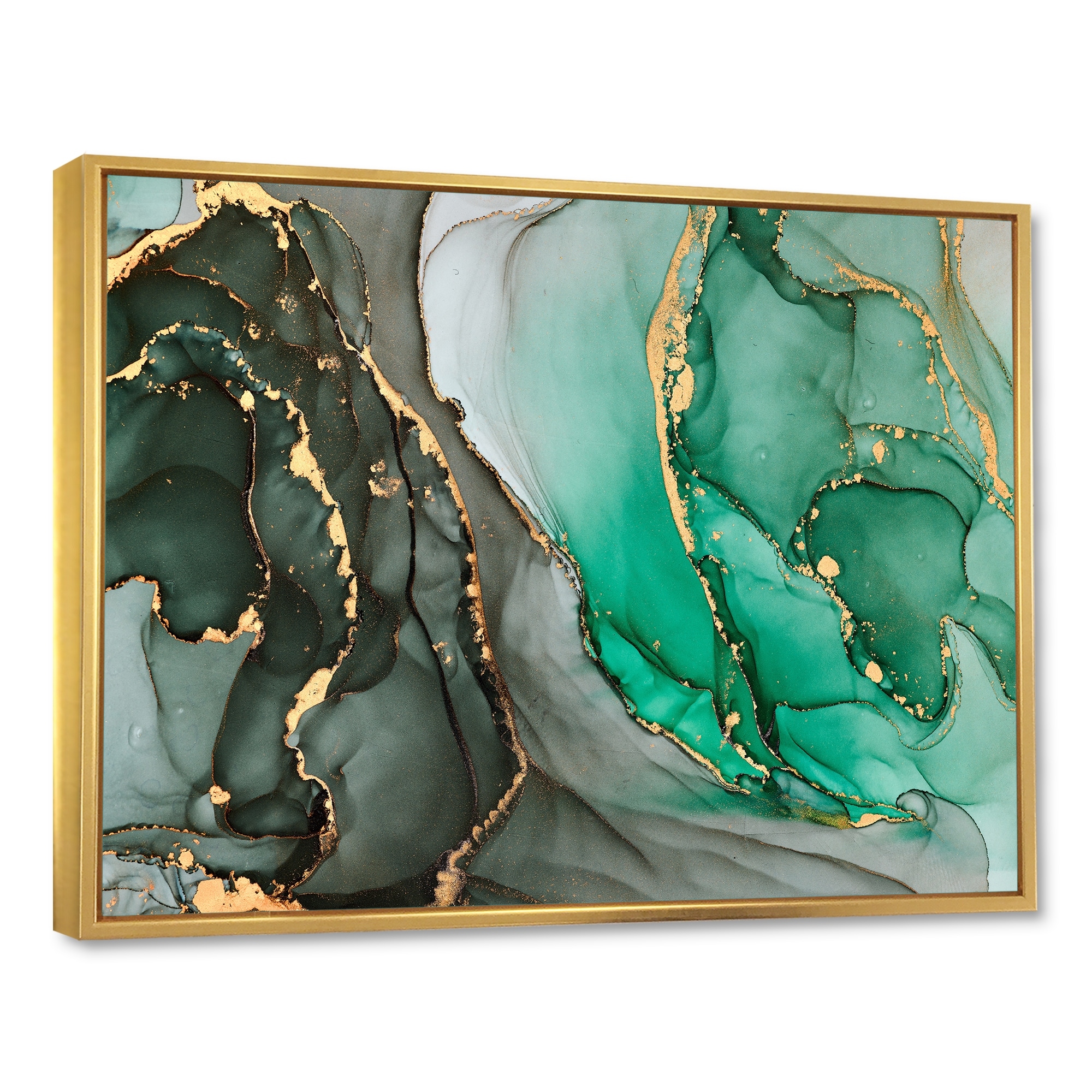 Designart "Turquoise And Grey Luxury Abstract Fluid Art I" Modern Framed Canvas Wall Art Print