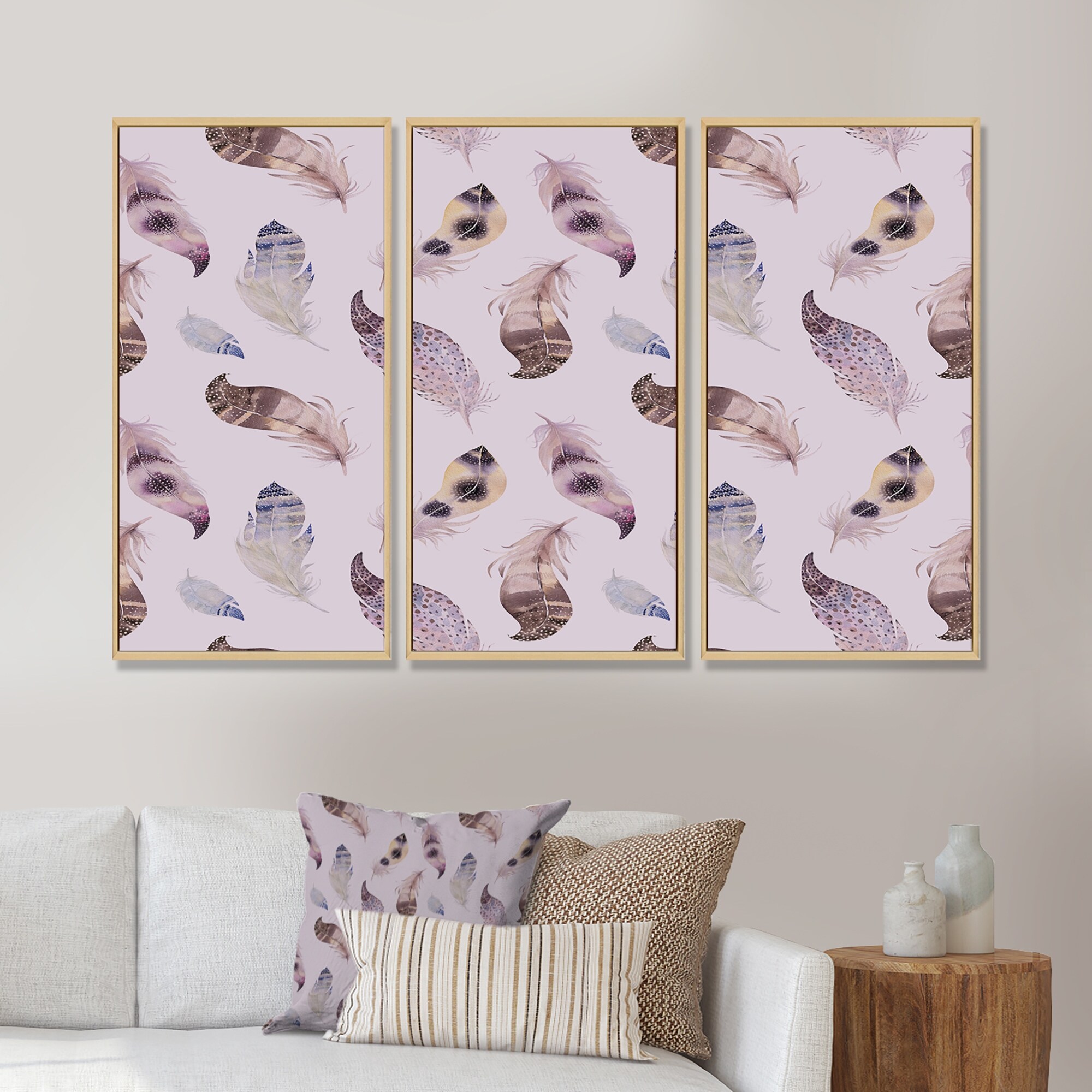 Designart "Twirling Colorful Boho Feathers II" Bohemian Framed Wall Art Set of 3 - 4 Colors of Frames